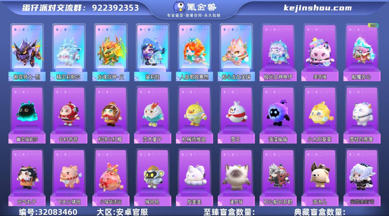 断罪骑士-烈焰心龙女芙瑞人鱼歌姬赛然龙魂战神-义鲨莉娃精灵莉斯尔"性别:女 等级:67 段位:三阶鸡蛋 历史潮流:8,5 幻彩套装数量:6 紫色套装数量:45 幻彩套装:焰心龙女芙瑞,人鱼歌姬赛然,龙魂战神-义,鲨莉娃,精灵莉斯尔,断罪骑士-烈 紫色套装:圆圆子,淘气妹妹,破誓骑士凯恩,猴吼吼,飞天小猪班尼,暹罗猫,元气丸子,大娃,精灵法师月歌,幽猎塞莉诺,鸭鸭dongdong,幽灵猫妮莎,船魔苏心,波泡儿,石心船长苏勒,美奇娅,发美美,莓莓甜心兔,打莱侠妙妙,赞萌露比,小福袋添运,极光女神典伊,雪怪瓦图鲁,小浮冰,小太阳葵葵,沸羊羊,美羊羊,小灰灰,海藻偷偷,雪王,机械师维迪,茨木童子,蜜蜂dongdong,上馆子怡,云村音音,八音盒温妮,水母尤莱亚,长草颜团子,仔仔熊,dongdong,水波蛋,嗷嗷,松饼小红帽,糖心公主,淘气丸子 背饰:海神的赐福,碎晶幻翼,鎏金蜂影,流光龙翼,天音引,浅海蓝灵,破云翼,鲨都有,孤岛之鲸,太空猫包,蝴蝶之梦,烈火飞行器 呦呦:炫光舞台,蒙胧胧 玩具: 星河弹弹车,揪揪呼叫机"