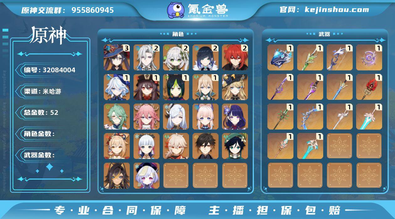邮箱: 未绑定 总黄数: 52 冒险等级: 60 3命金色角色: 三命莫娜 2命金色角色: 二命迪卢克,二命夜兰,二命纳西妲,二命那维莱特 1命金色角色: 一命琴,一命胡桃,一命提纳里,一命芙宁娜 0命金色角色: 温迪,枫原万叶,神里绫华,宵宫,七七,钟离,雷电将军,珊瑚宫心海,申鹤,八重神子,迪希雅,白术,娜维娅 1精武器: 雾切之回光,和璞鸢,天空之傲,风鹰剑,天空之刃,天空之脊,护摩之杖,薙草之稻光,不灭月华,苍古自由之誓,冬极白星,若水,裁叶萃光,万世流涌大典