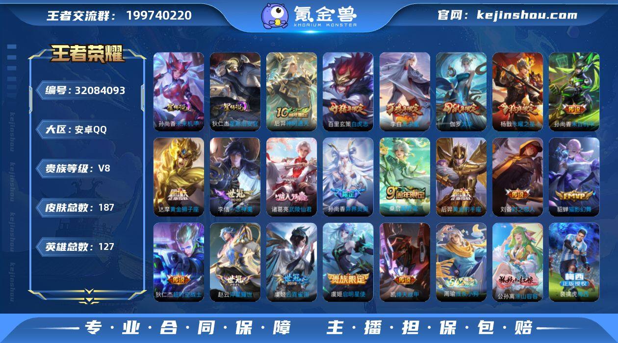 可换绑【特价精品号·梅西·孙尚香异界灵契·赵云世冠·伽罗太华·白虎志·武陵仙君·凤求凰·狗年杨戬·鼠年全套·瑞麟志·玄武志·青龙志】2星传说 1按键 3371星币 2王者印记 五级铭文190 可二次BX5106 安卓Q-V8-187皮肤-19传说-70史诗【星元皮肤】:狄仁杰星际治安官,孙尚香未来机甲【传说皮肤】:后羿神树通天,桑启鸣野蒿,孙尚香异界灵契,赵云淬星耀世,铠绛天战甲,虞姬启明星使,李信一念神魔,刘备时之恋人,伽罗太华,貂蝉猫影幻舞,虞姬云霓雀翎,达摩黄金狮子座,百里玄策白虎志,后羿黄金射手座,杨戬永曜之星,诸葛亮武陵仙君,李白凤求凰,孙尚香末日机甲,狄仁杰超时空战士【限定皮肤】:白起狰,姜子牙天穹之誓,狄仁杰阴阳师,赵云皇家上将,赵云龙胆,墨子神迹守卫,妲己时之彼端,嬴政白昼王子,孙尚香异界灵契,鲁班七号狮舞东方,庄周玄嵩,庄周高山流水,高渐离玩趣恶龙,阿轲迷踪丽影,孙膑天狼运算者,吕布猎兽之王,吕布御风骁将,周瑜赤莲之焰,元歌云间偶戏,夏侯惇朔风刀,甄姬幽恒,曹操天狼征服者,典韦蓝屏警告,典韦岱宗,狄仁杰魔术师,达摩沙漠行僧,项羽海滩派对,项羽霸王别姬,老夫子醍醐杖,老夫子航海奇遇记,安琪拉魔法小厨娘,程咬金演武夺筹,刘邦夺宝奇兵,韩信飞衡,兰陵王驯魔猎人,兰陵王金庭之子,花木兰瑞麟志,亚瑟潮玩骑士王,孙悟空大圣娶亲,孙悟空孙行者,牛魔御旌,牛魔奔雷神使,后羿圣弓游侠,李元芳银河之约,李元芳云中旅人,虞姬启明星使,钟馗神迹守卫,钟馗驱傩正仪,杨玉环遇见飞天,杨戬永曜之星,女娲朔望之晖,干将莫邪真爱魔法,蔡文姬繁星吟游,鬼谷子原初探秘者,诸葛亮武陵仙君,黄忠烈魂,铠青龙志,苏烈玄武志,苏烈千军破阵,百里玄策白虎志,弈星混沌棋,沈梦溪星空之诺,沈梦溪大漠名商,裴擒虎天狼狩猎者,裴擒虎李小龙,狂铁御狮,米莱狄御霄...