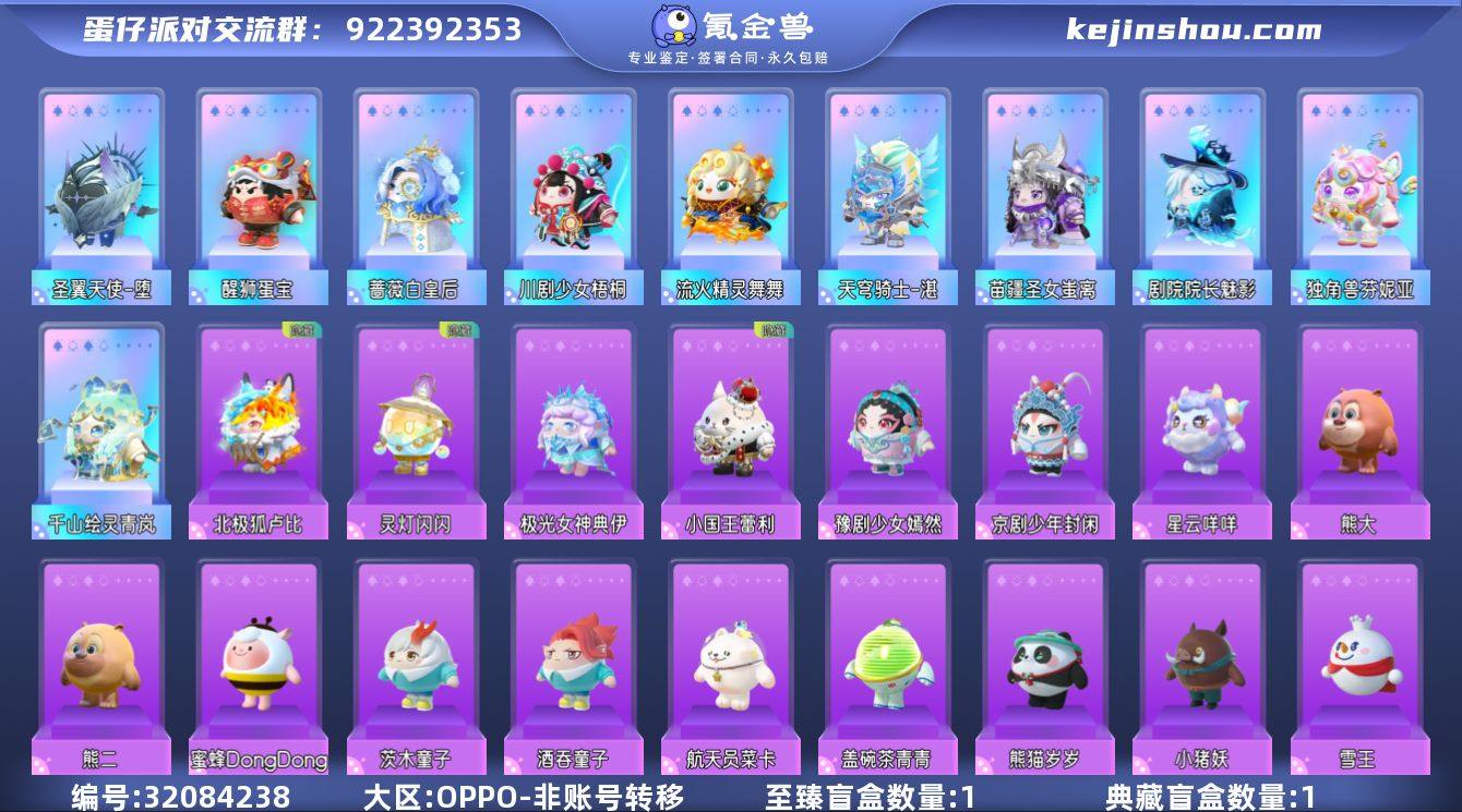 10彩78紫独角兽芬妮亚流火精灵舞舞千山绘灵青岚剧院院长魅影天穹骑士湛苗疆圣女蚩离 历史潮流:10.8万 段位:三阶鸡蛋 等级:57 幻彩套装数量:11 紫色套装数量:78 幻彩套装:独角兽芬妮亚 流火精灵舞舞 千山绘灵青岚 剧院院长魅影 天穹骑湛 苗疆圣女蚩离 川剧少女梧桐 圣翼天使堕 蔷薇白皇后 醒狮蛋宝 紫色套装: DongDong 执法官布谷 猴吼吼 京剧少年封闲 莓莓甜心兔 鲤鱼姬小锦 神兽嘲风 御狸奴 打菜侠妙妙 音乐家蕾利 飞天小猪班尼 企鹅心心 元气丸子 小太阳葵葵 道具师芙芙 小演员露希 袋鼠嘟宝 魔灯闪闪 刺猬绷绷 吟游诗人弥亚 神月将军夜魄 星云咩咩 流浪小象哆哆 盖碗茶青青 狸猫大力 饶舌诗人 大娃 豫剧少女嫣然 熊大 熊二 小国王蕾利 小福袋添运 大耳狗 极光女神典伊 北极狐卢比 雪怪瓦图鲁 北极兔卢米 陆小果 骨精灵 剑侠客 超人强 猪猪侠 沸羊羊 喜羊羊 小灰灰 灵灯闪闪 天狗刑云 泽塔 雪王 熊猫岁岁 小猪妖 仙人掌丘丘 航天员莱卡 酒吞童子 茨木童子 莹草班主任 失心熊 蜜蜂DongDong 波萝吹雪 水母尤莱亚 仓鼠米仔 灰太狼 懒羊羊 喜羊羊 吼吼 红小豆 仔仔熊 圆圆子 淘气丸子 背饰:碎晶幻翼 月白之隐 逐浪日志 众星孤月 天马法杖 孤岛之鲸 幽灵剧院 影月耀盾 雪貂竹篓 流火花环 蜀风古韵扇 蝴蝶之梦 裁决圣环 权利权杖 醒狮靠旗 玩具:炫光舞台 蒙胧胧 花灯 呦呦:鱼篓 星河弹弹车 2周年蛋糕 云梦兜兜龙 月落古筝 脆脆糖话筒 夜咏手风琴 随行召唤器 "
