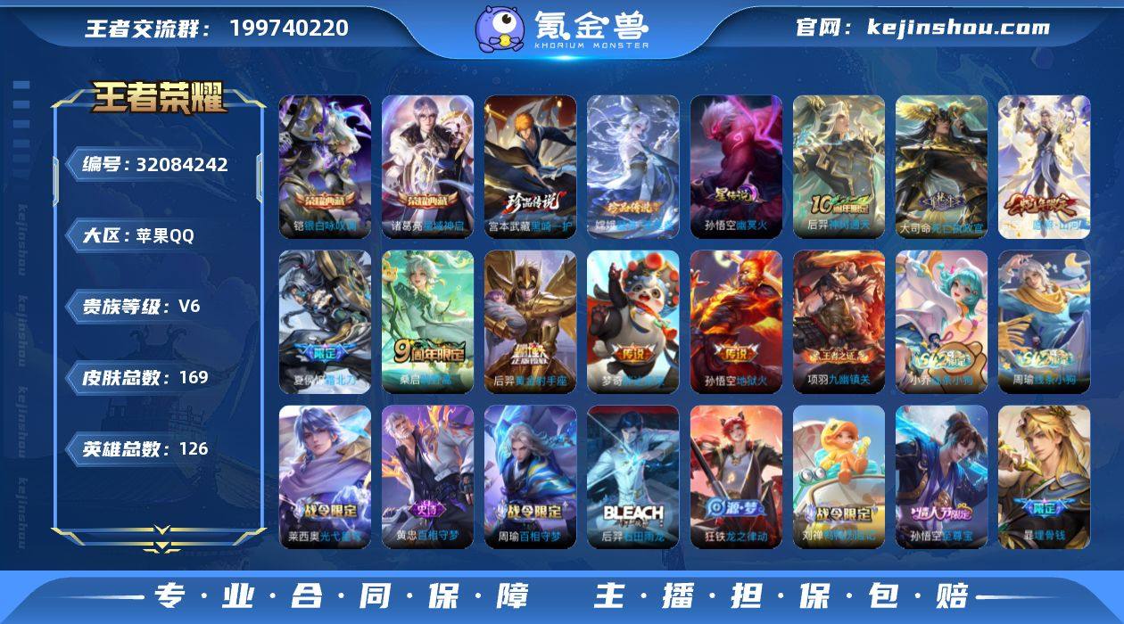 【秒换绑】苹果Q-V6-【金标大司命,宫本武藏】最强王者段位-126英雄-169皮肤-2典藏皮肤-2珍品传说-8传说-54史诗 【英雄全皮】:影全皮 【荣耀典藏】:诸葛亮星域神启,铠银白咏叹调 【珍品传说】:嫦娥器灵落星盏,宫本武藏黑崎一护 【传说皮肤】:后羿神树通天,大司命死亡执政官,司空震愿照山河定,桑启鸣野蒿,夏侯惇霜北刀,梦奇胖达荣荣,后羿黄金射手座,孙悟空地狱火 【限定皮肤】:夏侯惇霜北刀,暃埋骨钱,蒙犽顽岩魄,蔡文姬夏日便利店,虞姬夏日便利店,姜子牙天穹之誓,狄仁杰阴阳师,赵云皇家上将,庄周高山流水,狄仁杰魔术师,达摩沙漠行僧,项羽海滩派对,程咬金演武夺筹,兰陵王金庭之子,孙悟空至尊宝,李元芳云中旅人,钟馗驱傩正仪,雅典娜黎明之约,苏烈千军破阵,猪八戒猪悟能,上官婉儿梁祝,嫦娥拒霜思,桑启海盐诗旅,鬼谷子天穹祈灯,姬小满妄想食味,刘邦剑破天穹,程咬金群星魔术团 【年限皮肤】:司空震愿照山河定 【赛季限定】:程咬金演武夺筹,钟馗驱傩正仪,苏烈千军破阵,达摩沙漠行僧,兰陵王金庭之子,李元芳云中旅人,桑启海盐诗旅,鬼谷子天穹祈灯,刘邦剑破天穹,姜子牙天穹之誓,东皇太一噬灭天穹,太乙真人谧流熔炉,钟馗虚灵犬护,甄姬逆浪荇歌,亚瑟荣光之誓,雅典娜黎明之约,牛魔星界战将,项羽九幽镇关 【战令限定】:蔡文姬夏日便利店,虞姬夏日便利店,刘禅鸭鸭历险记,沈梦溪鸭鸭历险记,周瑜百相守梦,孙策百相守梦,莱西奥光弋星穹,明世隐往忆晖光,周瑜线条小狗,小乔线条小狗 【史诗皮肤】:鲁班七号电玩小子,赵云皇家上将,貂蝉圣诞恋歌,甄姬冰雪圆舞曲,王昭君偶像歌手,狄仁杰魔术师,廉颇地狱岩魂,宫本武藏鬼剑武藏,孙尚香水果甜心,嬴政暗夜贵公子,妲己魅力维加斯,墨子龙骑士,墨子金属风暴,吕布圣诞狂欢,刘禅绅士熊喵,曹操幽灵船长,吕布...