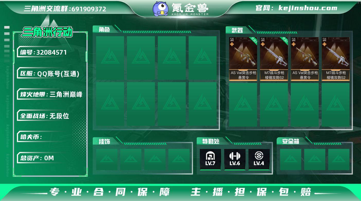 【特价出售】"总资产108.26M,哈夫币 2271.18K,战场等级:50 上等兵,行动等级:60 钻石,角色皮肤13,枪皮数量315【特战干员外观】红狼-蚀金玫瑰,露娜-黑·天际线,骇爪-维什戴尔,牧羊人-街头之王,威龙-铁面判官,威龙-壮志凌云,威龙-飞虎,蜂医-送葬人·无题密令,无名-夜鹰,红狼-电锯惊魂,露娜-金牌射手,深蓝-不破誓约,蜂医-黑鹰坠落,【近战】近战-影锋,近战-黑海,近战-北极星,近战-信条,近战-电锯惊魂,近战-黑鹰,【典藏外观】SCAR-H战斗步枪-电玩高手(优品C),K416突击步枪-潜袭者,G18-银灰金属,G18-银灰金属,AKM突击步枪-阿萨拉卫队,M249轻机枪-青纹,MP7冲锋枪-黑潮,M249轻机枪-蝴蝶,K416突击步枪-纯白涂装,AK-12突击步枪-淘金者,S12K霰弹枪-淘金者,PKM通用机枪-淘金者,沙漠之鹰-蛇纹涂装,M16A4突击步枪-常青藤,AUG突击步枪-常青藤,AUG突击步枪-常青藤,Mini-14射手步枪-常青藤,Mini-14射手步枪-常青藤,AS Val突击步枪-蝴蝶,M700狙击步枪-蝴蝶,M700狙击步枪-蝴蝶,M700狙击步枪-蝴蝶,【步枪】G3战斗步枪-骑士,SG552突击步枪-运动员,M16A4突击步枪-狩猎时刻,G3战斗步枪-狩猎时刻,AK-12突击步枪-特斯拉线圈,M7战斗步枪-神秘艺术,SCAR-H战斗步枪-铁艺苍穹,M7战斗步枪-维京,AS Val突击步枪-蛇年祥瑞,QBZ95-1突击步枪-破军,CAR-15突击步枪-阿米娅,CAR-15突击步枪-黑鹰坠落,M4A1突击步枪-阿米娅,M4A1突击步枪-蚀金玫瑰,ASh-12战斗步枪-鹅鸭杀,SCAR-H战斗步枪-启航,KC17突击步枪-电锯惊魂,K437突击步枪-北极星,AK-12突击步枪-夜鹰,SCAR-H战斗步枪-囚徒,PTR-32突击步枪-ACE,AS Val突击步枪-尖端治疗,腾龙突击步枪-无垢,K416突击步枪-竞技风,SCAR-H战斗步枪-国风,AS Val突击步枪-典狱官,G3战斗步枪-阿萨拉工艺,AS Val突击步枪-刀锋,QBZ95-1突击步枪-曙光...