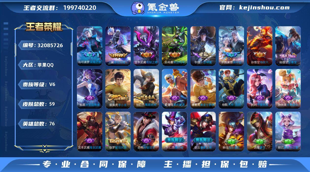 V6 7传说 59皮肤 76英雄 【7传说】马可波罗-深海之息,宫本武藏-地狱之眼,李信-一念神魔,孙尚香-末日机甲,孙悟空-地狱火,干将莫邪-画中仙,澜-逐花归海【14史诗】阿轲-节奏热浪,狄仁杰-魔术师,狄仁杰-鹰眼统帅,伽罗-箭羽风息,宫本武藏-鬼剑武藏,吕布-圣诞狂欢,裴擒虎-李小龙,孙尚香-水果甜心,孙悟空-至尊宝,夏侯惇-乘风破浪,杨戬-天秀·启明,赵云-皇家上将,甄姬-冰雪圆舞曲,诸葛亮-黄金分割率