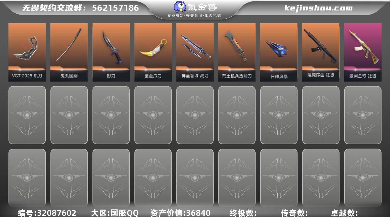 WLWW516【皮肤价值36840 般若假面2.0套 掠影套 VCT爪刀】【游戏等级】Lv158 【段位】未定级 【R点】940 【皮肤总价值】36,840 【英雄数量】28 【皮肤数量】74 【挂饰数量】87 【卡面数量】129 【喷漆数量】98 【标配】标配-阿特拉斯指挥部 标配-折光棱晶 标配-VCT25xLEV 标配-荒土机兵 【近战武器】近战武器-日耀风暴遗器 近战武器-诡秘蛇影军刀 近战武器-VCT2025爪刀 近战武器-神圣领域战刀 近战武器-紫金爪刀 近战武器-荒土机兵热能刀 近战武器-鬼丸国纲 近战武器-影刃 【正义】正义-日耀风暴 正义-月球哨兵 正义-纳米打击 正义-掠影 【冥驹】冥驹-甜蜜战术 冥驹-星云暗涌 冥驹-荒土机兵 冥驹-掠影 【骇灵】骇灵-日耀风暴 骇灵-星云暗涌 骇灵-荒土机兵 【獠犬】獠犬-幻语魔咒 獠犬-神圣领域 獠犬-般若假面//2.0 獠犬-逆冲蛮牛 【鬼魅】鬼魅-甜蜜战术 鬼魅-诡秘蛇影 鬼魅-星云暗涌 鬼魅-天界神兵 【幻影】幻影-日耀风暴 幻影-异鳞魔蛇 幻影-末日之翼 幻影-神圣领域 幻影-纳米打击 幻影-侦察力量 【飞将】飞将-幻语魔咒 飞将-末日之翼 【判官】判官-甜蜜战术 判官-诡秘蛇影 判官-纳米打击 【雄鹿】雄鹿-幻语魔咒 雄鹿-月球哨兵 雄鹿-逆冲蛮牛 【戍卫】戍卫-甜蜜战术 戍卫-折光棱晶 戍卫-月球哨兵 戍卫-逆冲蛮牛 戍卫-掠影 【狂徒】狂徒-RGX11zPro 狂徒-离子武器//2.0 狂徒-诡秘蛇影 狂徒-日冕雄师 狂徒-盖亚的复仇 狂徒-混沌序曲 狂徒-般若假面//2.0 狂徒-紫阙金琅 狂徒-荒土机兵 狂徒-掠影 【奥丁】奥丁-日耀风暴 奥丁-末日之翼 奥丁-纳米打击 【狂怒】狂怒-幻语魔咒 狂怒-神圣领域 狂怒-般若假面//2.0 狂怒-逆冲蛮牛 【莽侠】莽侠-诡秘蛇影 莽侠-月球哨兵 【蜂刺】蜂刺-折光棱晶 蜂刺-星云暗涌 【短炮】短炮-末日之翼 【战神】战神-神圣领域 战神-般若假面//2.0