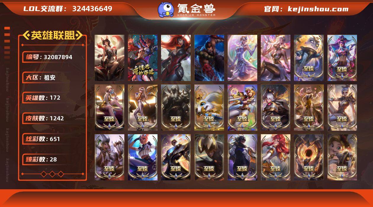 t37279【祖安】殿堂传奇阿狸 1242皮肤 651炫彩 28臻彩 75神话/235限定/115传说/172英雄 账号等级:694 云顶神话:3 单双排段位:白银 【重要头像】星守阿狸 云顶古琴娑娜 心型钥匙 觅心游侠卢锡安 雪花 春晖神女拉克丝 我麦是开的么 击拳 德丽 起司 幻灵战斗队长厄运小姐炫彩 星守金克丝炫彩 青花瓷伊泽瑞尔炫彩 剪纸仙灵艾瑞莉娅 剪纸仙灵艾瑞莉娅炫彩 魄罗虎虎生威 福运魄罗 战斗学院伊泽瑞尔神话炫彩 至臻剪纸仙灵希维尔 至臻青花瓷丽桑卓 至臻太空律动娜美 至臻太空律动璐璐 至臻战斗学院蕾欧娜 至臻福牛守护者菲奥娜 至臻女帝黛安娜 至臻奥术师佐伊 西部魔影卢锡安炫彩头 灰烬慎头像 灰烬慎炫彩头 【重要皮肤】殿堂传奇阿狸 永恒星灵佐伊至臻 暗裔英雄嘉文四世至臻 幻灵狮心蕾欧娜至臻 天龙之子伊泽瑞尔至臻 神龙尊者比翼之龙洛至臻 魂蔷薇烈娜塔至臻 DRX亚托克斯至臻 剪纸仙灵希维尔至臻 青花瓷丽桑卓至臻 太空律动魔音海妖娜美至臻 至高天奎桑提至臻 灵魂莲华易至臻 海珀利安小队X09星环灵风迦娜至臻 星之守护者辛德拉至臻 海之歌萨勒芬妮至臻 月蚀骑士赛娜至臻 幻灵战斗猫金克丝至臻 青花瓷拉克丝至臻 女帝黛安娜至臻 战斗学院蕾欧娜至臻 太空律动璐璐至臻 奥术师佐伊至臻 真实伤害亚索至臻 真实伤害赛娜至臻 灵魂莲华提莫至臻 福牛守护者菲奥娜至臻 源计划逆流塞拉斯至臻 源计划阴劫至臻 暗星墨菲特至臻 神龙尊者炎龙瑟提至臻 黑夜使者凯隐至臻 神龙尊者均衡之龙沃利贝尔至臻 飞升战神潘森至臻 焰执事布兰德至臻 KDA二代卡莎至臻 KDA一代卡莎至臻 KDA阿狸至臻 KDA伊芙琳至臻 战斗学院拉克丝至臻 烈焰美人薇恩至臻 烈焰美人薇恩2022至臻 电玩女神凯特琳至臻 魅惑女巫厄运小姐至臻 魅惑女巫厄运小姐2022至臻 源计划正义艾瑞莉娅...