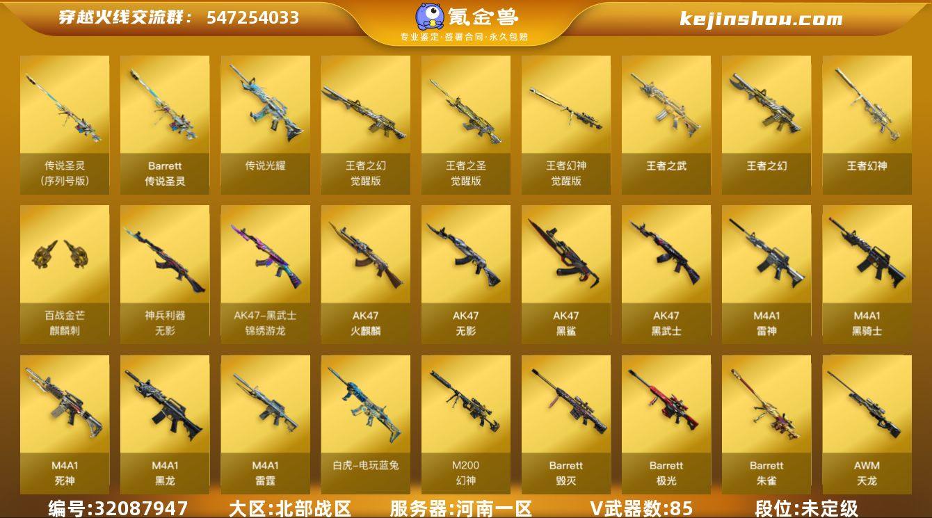 MCF843【85V 9王者 传说圣灵 传说光耀 王者之刺-觉醒版 王者之势-觉醒版 王者之武 王者幻神-觉醒版 王者之心-觉醒版 王者之幻 雷神荣耀世冠 幻神】【等级】100【区服】河南一区【英雄角色】4【英雄武器】85【传说级武器】传说圣灵 传说光耀【王者级武器】王者之刺-觉醒版 王者之势-觉醒版 王者之武 王者幻神-觉醒版 王者之心-觉醒版 王者之幻【炫金级武器】炫金武士【英雄级角色】炫 迷迭香 月兔特工 战地猎狐【英雄级武器】沙鹰-修罗 汤姆逊-烈龙 黑武士-锦绣游龙 无影-神兵利器 AK47-火麒麟 白虎-电玩蓝兔 Barrett-暗月传说 Barrett-暗月传说 Barrett-暗月传说 Barrett-暗月传说 擎天-竞技荣光 M200-竞技荣光 屠龙 AK47-B-常胜将军 AK47-B-战士 AK47-B-身先士卒 荣耀世冠-雷神 斩神刀-雷暴 高爆手雷-雷暴 烟雾弹-雷暴 闪光弹-雷暴 汤姆逊-烈龙 QBZ03-金色蔷薇 沙鹰-修罗 AWM-裁决 HK417-朱雀 AK47-黑鲨 AK-47-猩红传说 AK-47-猩红传说 AK-47-猩红传说 AK-47-猩红传说 AK47-黑武士 AK47-B-战神 AK47-B-战士 汤姆逊-烈龙 AK-47-猩红传说 M4A1-雷霆 高爆手雷-雷霆 烟雾弹-雷霆 闪光弹-雷霆 雷霆之契 高爆手雷-雷霆 烟雾弹-雷霆 闪光弹-雷霆 高爆手雷-雷霆 烟雾弹-雷霆 闪光弹-雷霆 高爆手雷-雷霆 烟雾弹-雷霆 闪光弹-雷霆 高爆手雷-雷霆 烟雾弹-雷霆 闪光弹-雷霆 雷霆之锋 高爆手雷-雷霆 烟雾弹-雷霆 闪光弹-雷霆 沙鹰-天神 沙鹰-天神 汤姆逊-烈龙 Barrett-极光 AK12-天启 Barrett-朱雀 汤姆逊-烈龙 M4A1-雷神 M200-幻神 麒麟刺 麒麟刺 M4A1-黑骑士 Barrett-毁灭 屠龙 汤姆逊-烈龙 M4A1-黑龙 擎天 沙鹰-修罗 AWM-天龙 M4A1-死神 屠龙 沙鹰-修罗 龙啸 AK47-无影 M4A1-雷神 斯泰尔 AUG A3-雪夜奇缘【源级武器】