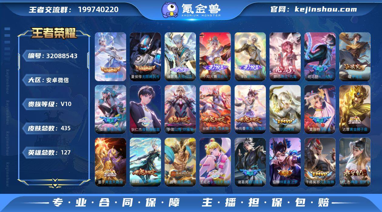 V10 2典藏 5无双 2珍品传说 72传说 127英雄 435皮肤 可修改实名 男号 【英雄全皮】娜可露露全皮,女娲全皮,蒙恬全皮,刘备全皮,橘右京全皮,澜全皮,敖隐全皮,空空儿全皮,孙权全皮,蚩奼全皮,百里守约全皮,达摩全皮,戈娅全皮,大司命全皮,夏洛特全皮,大禹全皮 【稀有英雄】敖隐(小龙人),大司命,韩信(韩跳跳),夏洛特(夏师傅),艾琳,橘右京(橘子),娜可露露(鸟人),不知火舞,赵云,金蝉(唐僧),戈娅 【荣耀水晶】最初的交响(伽罗典藏),无限飓风号(高达) 【无双皮】神罪,天机白泽,花合斗,青丘·九尾(妲己无双),碎月剑心(李白无双) 【珍品传说】怪盗基德,时之奇旅-孙策 【传说皮】牧神诗旅,黄金天蝎座,落雪白狼,吕布曦玄引,貂蝉曦玄引,乘龙·淬吴钩(孙策年限),乘龙·铭钟鼎(赵云年限),琥珀纪元马超,琥珀纪元铠,乘龙·问璇玑(孙尚香年限),九山相柳,神树通天,万灵伏威,千山共赴,死亡执政官,李逍遥,永恒水手月亮,山海·炽霜斩(李信年限),黄金狮子座,黄金射手座,黄金白羊座,零号·赤焰,地狱火,仲夏夜之梦(大飞蛾),云霓雀翎,淬星耀世,冠军飞将,久胜战神,炽阳神光,音你心动-小乔,胖达荣荣,时之恋人-刘备(电焊工),绛天战甲(鸡嘴战神),挚爱之约,音你闪耀(rap皮),碎云,神器·狴犴令,炽翼辉光(娃娃菜牛角包),画中仙,浮生妄,青丘·九尾,百相守梦(张飞),追逃游戏(亚瑟),电玩·雷克斯,鹤羽星尊,灼幽烈阳,妄想实况,惊梅引,遇见神鼓,夜礼服假面,澜逐花归海,艾琳觅芳踪 【珍宝阁皮】锁墨魂,优雅恋人,玩趣恶龙 【赛季/战令皮】噬灭天穹(s37),古海寻踪(s33),海盐诗旅(s30),擒涛扼浪(s31),潮玩骑兵,奇幻香踪,探海日志(s32),驭风魔法,玲珑珍味,流音漫舞,顽趣-梦奇,地狱燃心,剑破天穹(s35),天穹祈灯(s34),青焰无极,苍威无极,天穹之誓(s36),虞姬夏日便利店,万华元夜(s22),驱傩正仪(s24),朔望之晖,狮舞东方,银河之约,夺宝奇兵,潮玩骑士王,星际陆战队-达摩,胡桃异...
