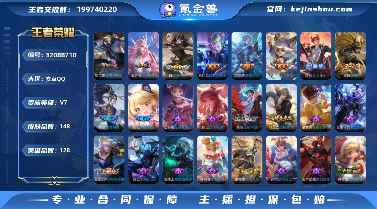 金标花木兰·万战金标蒙犽·武则天·九霄神辉·武圣·太华·武陵仙君·云鹰飞将·飞鸢探春·可二次】w16385-安卓Q-128英雄-148皮肤-9王者印记-170铭文-贵族积分4w【贵族7】【2典藏·2星传说·8传说·8按键】【因赛季更新游戏段付以上号为准!】 【荣耀典藏】:武则天英雄,花木兰九霄神辉 【星元皮肤】:狄仁杰星际治安官,武则天幻海之心 【传说皮肤】:后羿神树通天,李元芳飞鸢探春,关羽武圣,曜云鹰飞将,伽罗太华,诸葛亮武陵仙君,武则天海洋之心,狄仁杰超时空战士 【限定皮肤】:狄仁杰阴阳师,赵云皇家上将,墨子神迹守卫,妲己时之奇旅,鲁班七号乒乒小将,钟无艳超时空战士,扁鹊奇幻香踪,甄姬落雪兰心,狄仁杰魔术师,达摩星际陆战队,达摩沙漠行僧,项羽海滩派对,老夫子航海奇遇记,关羽武圣,关羽百相守梦,程咬金演武夺筹,韩信傲雪梅枪,王昭君午后时光,兰陵王金庭之子,孙悟空孙行者,李元芳云中旅人,虞姬霸王别姬,钟馗驱傩正仪,杨戬潮玩骑兵,干将莫邪胡桃夹子,雅典娜黎明之约,蔡文姬奇迹圣诞,诸葛亮武陵仙君,苏烈千军破阵,百里玄策原初追逐者,百里守约朱雀志,梦奇顽趣,沈梦溪大漠名商,裴擒虎李小龙,裴擒虎擒涛扼浪,狂铁电玩高手,伽罗太华,伽罗天狼溯光者,蒙犽狂想玩偶喵,鲁班大师探海日志,桑启海盐诗旅,张良古海寻踪,鬼谷子天穹祈灯 【年限皮肤】:百里守约朱雀志,伽罗太华 【赛季限定】:程咬金演武夺筹,钟馗驱傩正仪,苏烈千军破阵,达摩沙漠行僧,兰陵王金庭之子,沈梦溪大漠名商,李元芳云中旅人,桑启海盐诗旅,裴擒虎擒涛扼浪,鲁班大师探海日志,张良古海寻踪,鬼谷子天穹祈灯,钟馗虚灵犬护,甄姬逆浪荇歌,亚瑟荣光之誓,百里玄策原初追逐者,雅典娜黎明之约,梦奇顽趣 【战令限定】:蒙犽狂想玩偶喵,达摩星际陆战队,老夫子航海奇遇记,墨子神迹守卫,狂铁电玩高手,...