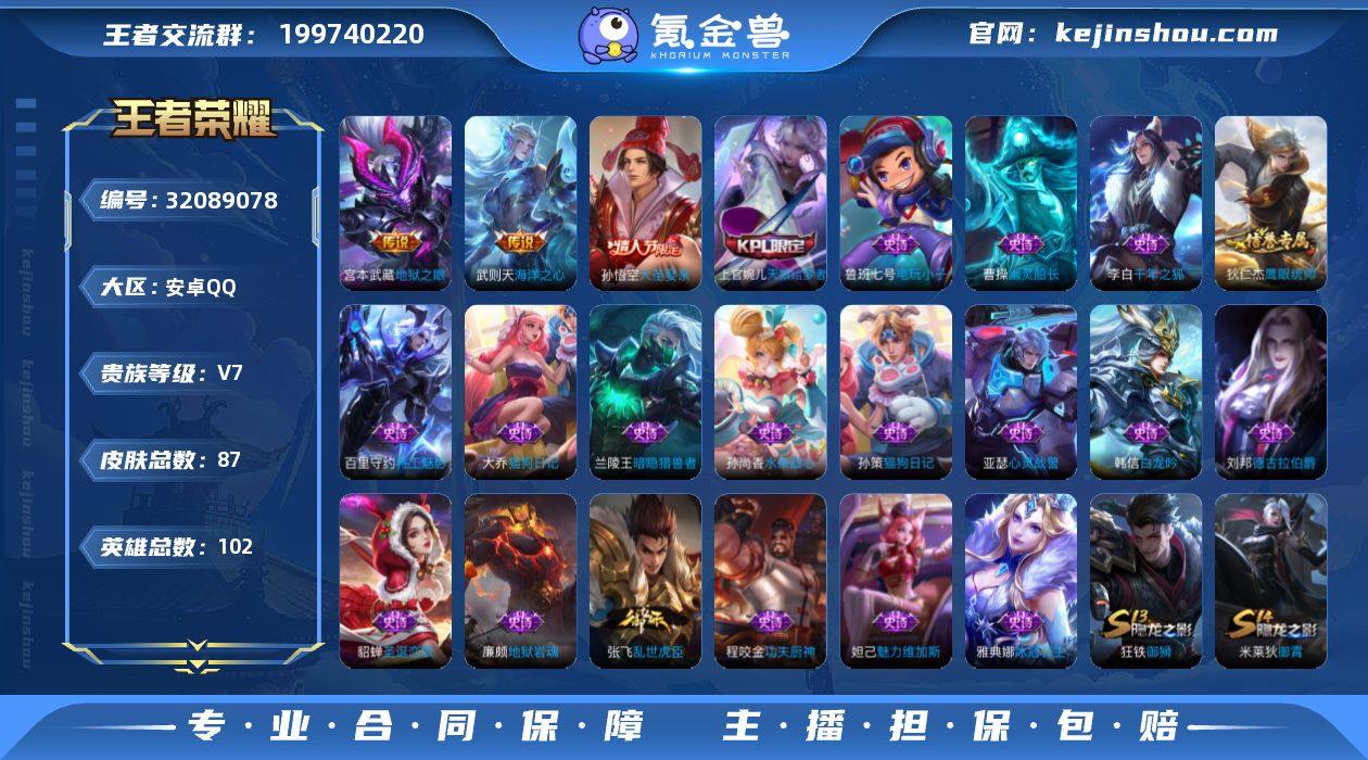 海洋之心·白虎志·神骥逐星野】【可二次】w17971-安卓Q-102英雄-87皮肤-2王者印记-107铭文-贵族积分3w【贵族7】【1典藏·4传说·3按键·幸运值127】【因赛季更新游戏段付以上号为准!】 【英雄全皮】:孙权全皮 【荣耀典藏】:武则天英雄 【传说皮肤】:马超神骥逐星野,百里玄策白虎志,宫本武藏地狱之眼,武则天海洋之心 【限定皮肤】:暃埋骨钱,狄仁杰阴阳师,赵云皇家上将,吕布猎兽之王,狄仁杰魔术师,狄仁杰万华元夜,项羽海滩派对,老夫子醍醐杖,程咬金演武夺筹,孙悟空大圣娶亲,牛魔御旌,钟馗驱傩正仪,杨玉环遇见飞天,鬼谷子原初探秘者,百里玄策白虎志,弈星混沌棋,明世隐疑决卦,狂铁御狮,米莱狄御霄,上官婉儿天狼绘梦者 【年限皮肤】:百里玄策白虎志 【赛季限定】:狂铁御狮,米莱狄御霄,牛魔御旌,弈星混沌棋,明世隐疑决卦,老夫子醍醐杖,鬼谷子原初探秘者,狄仁杰万华元夜,程咬金演武夺筹,钟馗驱傩正仪,亚瑟荣光之誓 【战令限定】:吕布猎兽之王,周瑜线条小狗,小乔线条小狗 【史诗皮肤】:达摩星君亢金,太乙真人瓦猫非猫,周瑜线条小狗,小乔线条小狗,女娲万灵启世,暃埋骨钱,上官婉儿天狼绘梦者,狄仁杰鹰眼统帅,孙悟空大圣娶亲,大乔猫狗日记,孙策猫狗日记,杨玉环遇见飞天,阿轲节奏热浪,程咬金功夫厨神,百里守约特工魅影,雅典娜冰冠公主,亚瑟心灵战警,兰陵王暗隐猎兽者,刘邦德古拉伯爵,韩信白龙吟,张飞乱世虎臣,李白千年之狐,曹操幽灵船长,妲己魅力维加斯,孙尚香水果甜心,廉颇地狱岩魂,狄仁杰魔术师,貂蝉圣诞恋歌,赵云皇家上将,露娜紫霞仙子,鲁班七号电玩小子 【其他皮肤】:桑启线条小狗,蚩奼极光幻客,艾琳鹤鸣心笺,孙权径山谋武,亚瑟荣光之誓,海月幻泉雾影,钟馗驱傩正仪,程咬金演武夺筹,露娜瓷语鉴心,狄仁杰万华元夜,鬼谷子原初探秘者,老夫子...