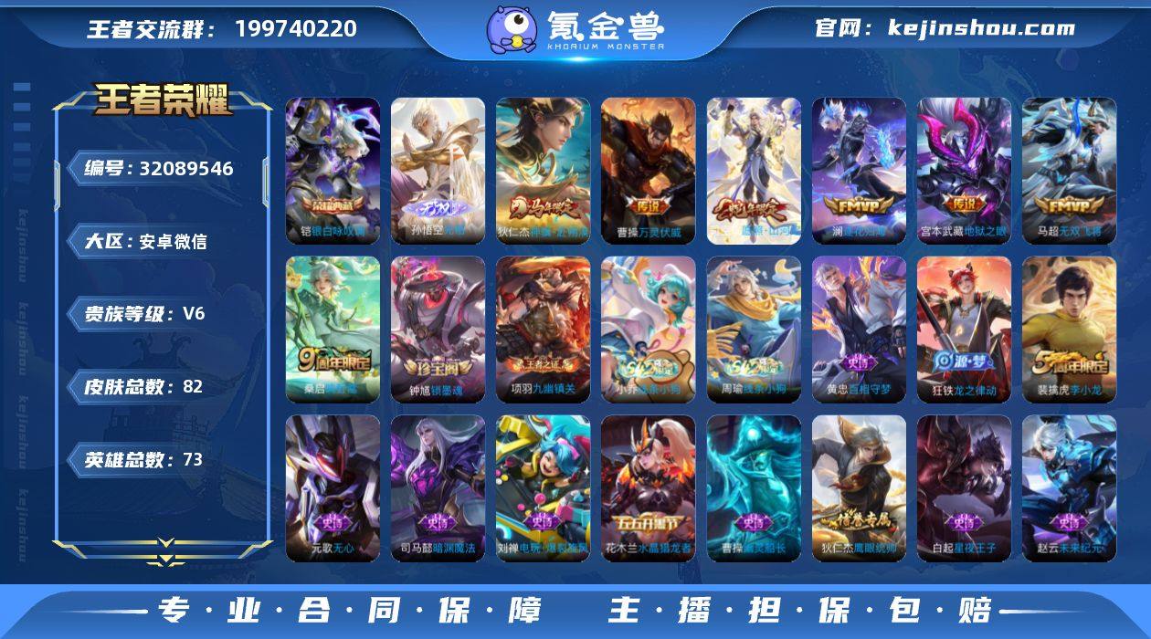 安卓微信 可二次 1典藏1无双7传说73英雄82皮肤 银白咏叹调 无相 逐花归海 神骥赴朔漠 万灵伏威 愿照山河定 鸣野蒿 无双飞将 地狱之眼 黄忠百相守梦 电玩爆裂旋风 李小龙 水晶猎龙者 地狱岩魂 幽灵船长 圣诞狂欢 星夜王子 天才门将 暗夜贵公子 街头霸王 箭羽风息 暗渊魔法 缤纷独角兽 鬼剑武藏 未来纪元赵云 拳王 皇家上将 魅力维加斯 水果甜心 无心 鹰眼统帅 魔术师 王者荣耀账号