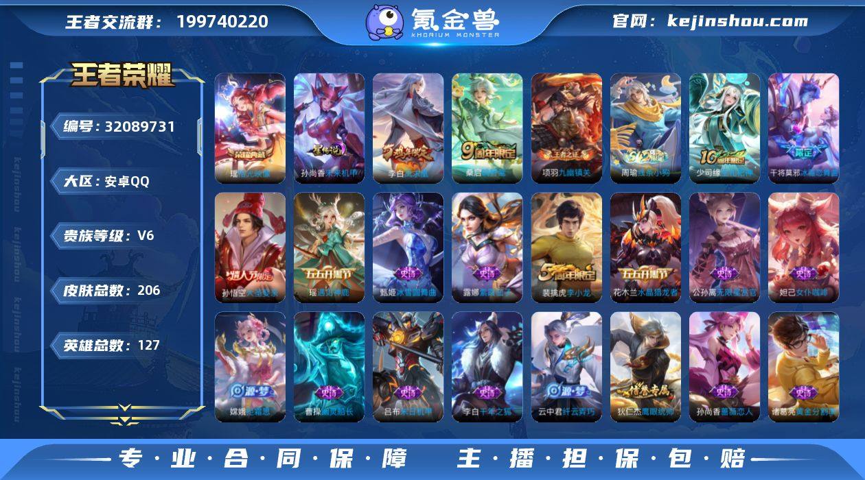 【极品辅助战力号·1.4万战小国标瑶·1.4万战金标张飞·1.3万战金标少司缘·1.1万战金标张良·1.1万战金标朵利亚·游走58段·拾光映像·凤求凰·遇见神鹿·大圣娶亲·可二次】YXw17988-安卓Q-127英雄-206皮肤-23王者印记-230铭文-贵族积分1w【贵族6】【1典藏·1星传说·2传说·1按键】【因赛季更新游戏段付以上号为准!】 【荣耀典藏】:瑶拾光映像 【星元皮肤】:孙尚香未来机甲 【传说皮肤】:桑启鸣野蒿,李白凤求凰 【内测皮肤】:孙尚香蔷薇恋人,嬴政优雅恋人,高渐离玩趣恶龙,狂铁特工战影 【限定皮肤】:姜子牙天穹之誓,狄仁杰阴阳师,赵云皇家上将,嬴政优雅恋人,孙尚香蔷薇恋人,庄周高山流水,高渐离死亡摇滚,高渐离玩趣恶龙,芈月重明,夏侯惇朔风刀,甄姬游园惊梦,典韦穷奇,狄仁杰魔术师,狄仁杰万华元夜,达摩沙漠行僧,项羽海滩派对,老夫子醍醐杖,程咬金演武夺筹,兰陵王金庭之子,孙悟空大圣娶亲,牛魔御旌,李元芳云中旅人,钟馗驱傩正仪,杨玉环遇见飞天,干将莫邪冰霜恋舞曲,雅典娜黎明之约,蔡文姬繁星吟游,太乙真人华丽摇滚,鬼谷子原初探秘者,苏烈千军破阵,百里玄策原初追逐者,弈星混沌棋,梦奇顽趣,沈梦溪大漠名商,明世隐疑决卦,裴擒虎李小龙,裴擒虎擒涛扼浪,狂铁御狮,米莱狄御霄,云中君纤云弄巧,嫦娥拒霜思,鲁班大师探海日志,桑启海盐诗旅,张良古海寻踪,蒙恬荣光圣徽,鬼谷子天穹祈灯,沈梦溪龙舞盛年,刘邦剑破天穹 【年限皮肤】:李白凤求凰 【赛季限定】:芈月重明,典韦穷奇,狂铁御狮,米莱狄御霄,牛魔御旌,夏侯惇朔风刀,弈星混沌棋,明世隐疑决卦,老夫子醍醐杖,鬼谷子原初探秘者,狄仁杰万华元夜,程咬金演武夺筹,钟馗驱傩正仪,苏烈千军破阵,达摩沙漠行僧,兰陵王金庭之子,沈梦溪大漠名商,李元芳云中旅人,桑启海盐诗旅,裴擒虎擒涛扼浪,鲁班大师探海日志,张...