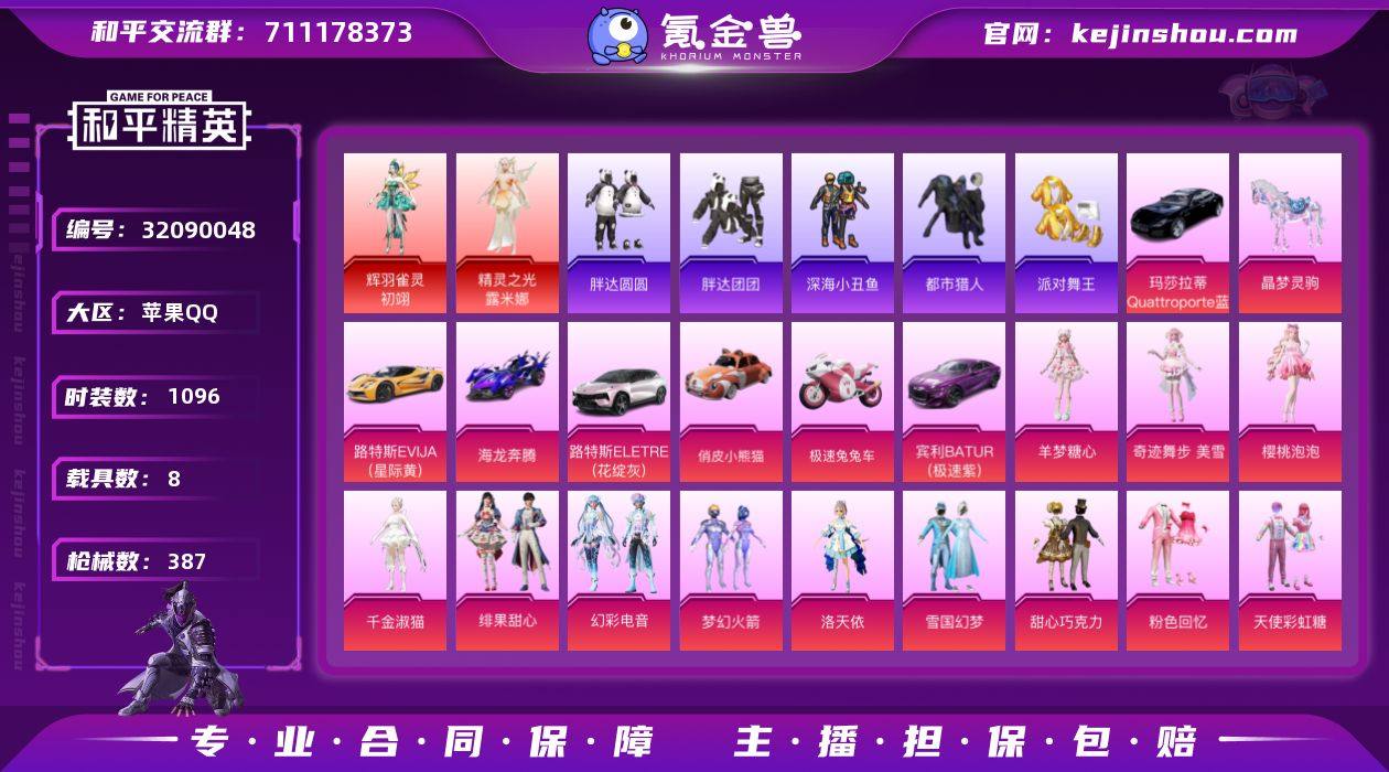 2红装51粉23枪8车⚡极品女号⚡战神框 21印记4绝世印记⚡3级路米娜雀灵都市 金鞋子 红番茄🍅 粉熊背包 放客神游 巧克力三姐妹 雪国 洛天依 猪妹 童趣迷兔 苹果手Q-21王牌印记-有战神框-2红装-51粉装-23特效枪-8载具-热力值-310套装-387枪皮-7卓越印记-4传奇印记 【2红装】辉羽雀灵-初翊/1级,精灵之光-露米娜/3级 【51粉装】套装-寒光使者,角色-樱桃泡泡,套装-海盐物语,角色-虹云熊熊,人物-小舞·灵珑,套装-绯果甜心,套装-酣梦娃娃,套装-雪国幻梦,套装-幻彩电音,套装-缤纷油彩,角色-小叽联名款,套装-甜心娃娃,套装-橘柚倾心,角色-洛天依,套装-纯珍童话,套装-林间仙鹿,套装-冰川粉黛,套装-梦幻火箭,套装-第五大道,角色-千金淑猫,套装-暖熊萌萌,套装-炙焰红王,套装-蝶舞蔷薇,套装-薄荷物语,套装-甜蜜草莓,套装-傲傲奶龙,套装-灵感创作师,套装-粉色回忆,套装-彩虹甜喵,套装-萌物绒绒,角色-绝对恒星,套装-甜心巧克力,套装-童趣迷兔,角色-奇迹舞步 美雪,套装-恐龙拽拽,角色-鸢尾晶梦,套装-霓虹漫游,套装-天使彩虹糖,套装-放客神游,套装-甜梦小狐,角色-羊梦糖心,套装-彩虹鹿灵,角色-小蓝,套装-冰霜白皇,套装-蜜语绒猫,套装-冰川红玫,套装-山涧鹿灵,套装-宝贝奶油派,套装-冰川幽秘,套装-岚岚物语,套装-馨动时刻 【23特效枪】GROZA-精灵之光/2级,M416-墨龙九天/2级,GROZA-镜光银凌/5级,M416-心之恋语/2级,DP-28-豹影疾电/5级,平底锅-林间仙鹿/7级,UMP45-恐龙拽拽/7级,Mk14-福马献瑞/5级,SCAR-L-童趣迷兔/7级,M249-绝对恒星/4级,M416-暖熊萌萌/7级,SPAS-12-蜜语绒猫/3级,Kar98K-巳巳如意/5级,AWM-橘柚倾心/4级,AKS-74U-森灵之息/5级,Mk14-樱桃泡泡/2级,AUG-暖羊咩咩/5级,Mk14-盛世惊鸿/3级,ACE32-萌骑漫游/2级,MG3-洛神天依/3级,SCAR-L-青春物语/1级,S