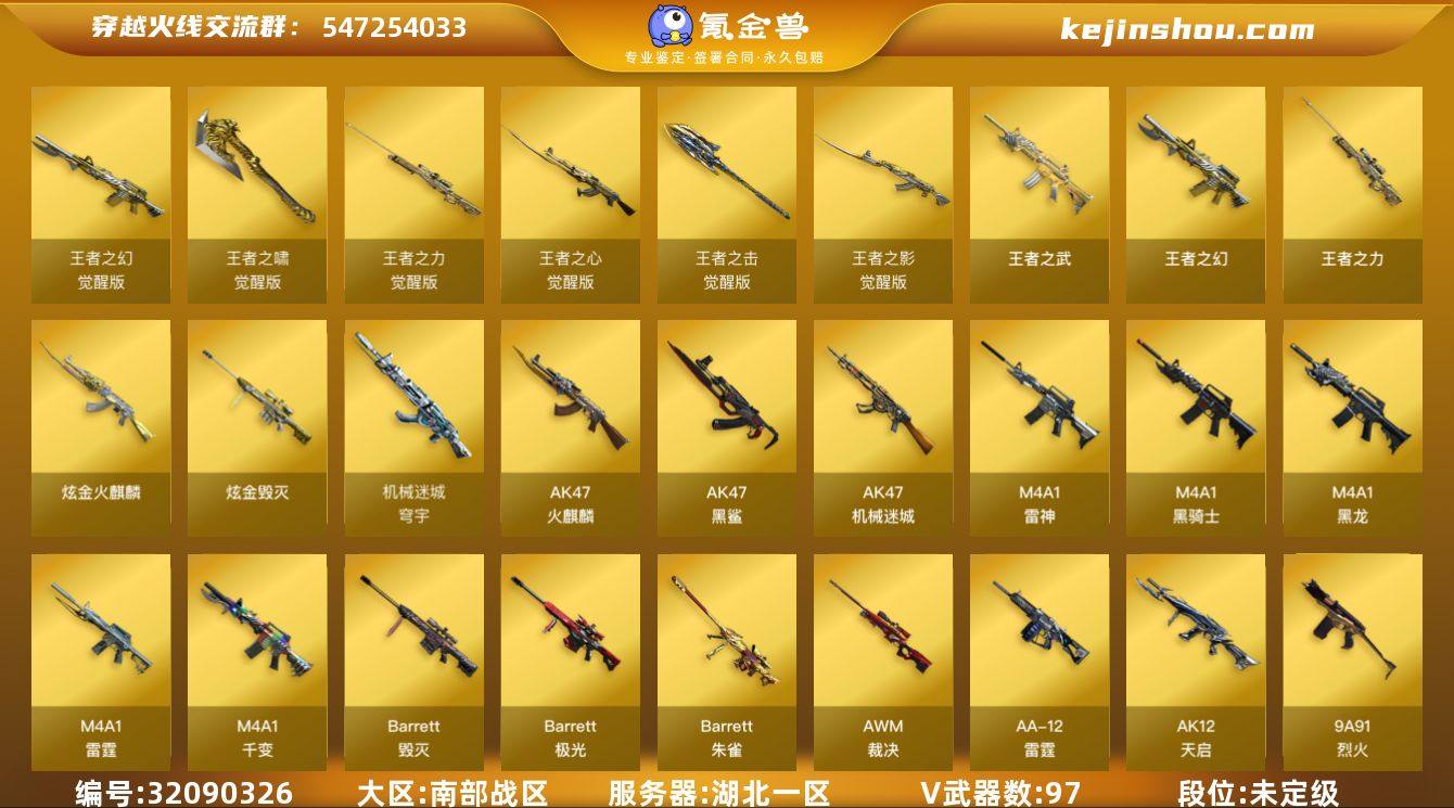 MCF680【南部湖北一区】【97V15王者7炫金】【5盘龙+1炼狱 雷霆套 6修罗 6烈龙 死亡之眼 】【王者武器】 王者之心觉醒版 王者之影觉醒版 王者之光觉醒版 王者之啸觉醒版 王者之击觉醒版 王者之幻 王者之武 王者之力 王者之怒x2 王者之灵x3 王者之锋x2 【炫金武器】 炫金火麒麟 炫金雷神x2 炫金骑士x3 炫金毁灭 【英雄武器】 M4A1-千变 AK47-火麒麟 M4A1-黑龙 M4A1-雷神 M4A1-黑骑士 AK12-天启 AK47-机械迷城 AK47-黑鲨 M4A1-雷霆 机械迷城-穹宇 9A-91-烈火 AK47-B-战神 Barrett-毁灭 Barrett-极光 Barrett-雷霆 Barrett-朱雀 AWM-裁决 RPK-盘龙 加特林-炼狱 汤姆逊-烈龙 AA-12-雷霆 沙鹰-修罗 沙鹰-天神 COP357-雷霆 屠龙 龙啸 擎天 麒麟刺 尼泊尔-雷霆 高爆手雷-雷霆x7 烟雾弹-雷霆x7 闪光弹-雷霆 x7 【角色】 葵 零 瞳 樱 炫 【音效卡】 Barrett-碧霄极光音效卡 Barrett-毁灭音效卡 【皮肤】 毁灭耀金皮肤 火麒麟-华夏之心 雷神-虎将 火麒麟-CF STAR 天龙-CF STAR 修罗-CF STAR