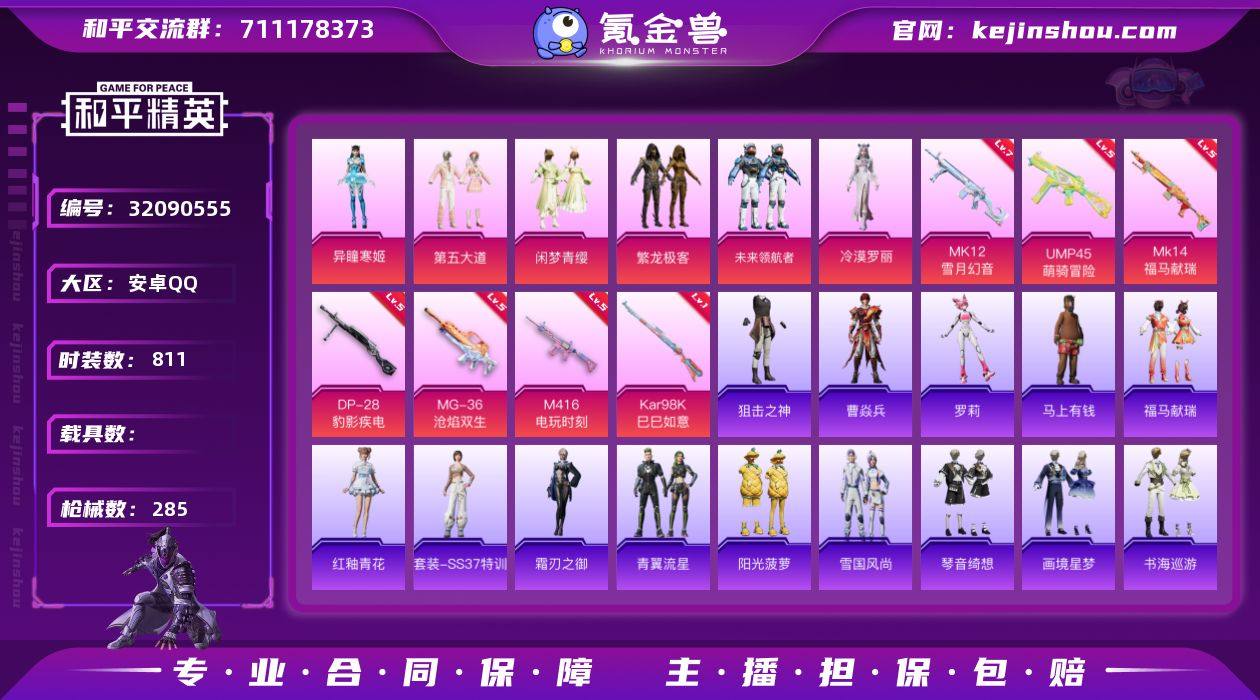【6粉装7特效枪送安卓王者q 175皮2典藏1传说】 安卓Q区-83341热力值-18印记-223套装-285枪皮【6粉装】 未来领航者 繁龙极客 闲梦青缨 角色-异瞳寒姬 第五大道 角色-冷漠罗丽【7特效枪】UMP45-萌骑冒险[5级] Mk14-福马献瑞(5级) MG-36-沧焰双生(5级)MK12-雪月幻音(7级) M416-电玩时刻(5级) DP-28-豹影疾电(5级) Kar98K-巳巳如意(1级)【2稀有】8号机 Mark.06 【14热门】 Mark.06 浪漫天命 雪山精英(老6服) 迪迦奥特曼 极速红龙 狂沙舞者 醒狮腾龙 团圆交子 MG3-乌木金纹 M249-妙红点点 Mini14-炫彩节奏 Kar98K-彩虹符号 M416-糯团青竹 AKM-彩虹符号【2飞行器】 镜光幻境飞行翼 炫彩糖果飞行器【1背包】 幻影战神背包 营地ID:790921451