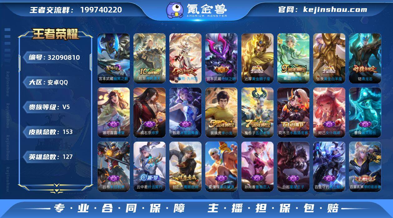 V5 6传说 1星元 153皮肤 127英雄 【6传说】达摩-黄金狮子座,宫本武藏-地狱之眼,张良-黄金白羊座,桑启-鸣野蒿,澜-愿照·九州拓,后羿-神树通天【1星元】宫本武藏-幽冥之眼【33史诗】鬼谷子-五谷丰年,赵云-未来纪元,阿轲-节奏热浪,白起-星夜王子,百里守约-特工魅影,百里玄策-原初追逐者,曹操-幽灵船长,程咬金-功夫厨神,妲己-女仆咖啡,妲己-魅力维加斯,狄仁杰-鹰眼统帅,貂蝉-圣诞恋歌,宫本武藏-鬼剑武藏,花木兰-水晶猎龙者,橘右京-修罗,铠-青龙志,兰陵王-暗隐猎兽者,李元芳-逐浪之夏,刘邦-德古拉伯爵,刘禅-天才门将,吕布-末日机甲,墨子-金属风暴,娜可露露-晚萤,哪吒-雪上飞焰,裴擒虎-李小龙,孙尚香-水果甜心,孙尚香-蔷薇恋人,夏侯惇-乘风破浪,小乔-缤纷独角兽,亚瑟-心灵战警,云中君-纤云弄巧,赵云-皇家上将,甄姬-冰雪圆舞曲