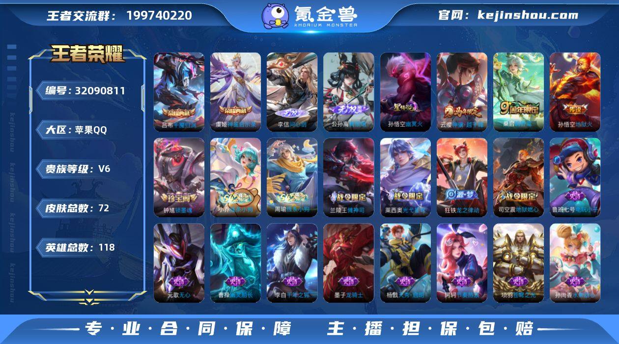 【极品小号·问心剑·离恨烟·神鉴启示录·千魇归渊·神骥越千峰】【可二次】YXw17993-苹果Q-118英雄-72皮肤-2王者印记-92铭文-贵族积分1w【贵族6】【2典藏·2无双·1星传说·3传说·6按键·221幸运值】【因赛季更新游戏段付以上号为准!】 【荣耀典藏】:虞姬神鉴启示录,吕布千魇归渊 【无双皮肤】:李信问心剑,公孙离离恨烟 【星元皮肤】:孙悟空幽冥火 【传说皮肤】:云缨神骥越千峰,桑启鸣野蒿,孙悟空地狱火 【限定皮肤】:公孙离离恨烟,蔡文姬夏日便利店,狄仁杰阴阳师,赵云皇家上将,元歌无心,狄仁杰魔术师,项羽海滩派对,兰陵王金庭之子,裴擒虎擒涛扼浪,鲁班大师探海日志,桑启海盐诗旅,司空震地狱燃心,张良古海寻踪,鬼谷子天穹祈灯 【赛季限定】:兰陵王金庭之子,桑启海盐诗旅,裴擒虎擒涛扼浪,鲁班大师探海日志,张良古海寻踪,鬼谷子天穹祈灯,东皇太一噬灭天穹,亚瑟荣光之誓 【战令限定】:司空震地狱燃心,蔡文姬夏日便利店,兰陵王傩神司,莱西奥光弋星穹,明世隐往忆晖光,周瑜线条小狗,小乔线条小狗 【史诗皮肤】:钟馗锁墨魂,周瑜线条小狗,小乔线条小狗,兰陵王傩神司,莱西奥光弋星穹,狂铁龙之律动,蔡文姬夏日便利店,司空震地狱燃心,元歌无心,杨戬天秀启明,孙策猫狗日记,阿轲节奏热浪,李元芳逐浪之夏,刘禅天才门将,亚瑟心灵战警,张飞乱世虎臣,李白千年之狐,曹操幽灵船长,墨子龙骑士,妲己魅力维加斯,嬴政摇滚巨星,孙尚香水果甜心,宫本武藏鬼剑武藏,狄仁杰魔术师,王昭君偶像歌手,赵云皇家上将,项羽苍穹之光,鲁班七号电玩小子 【其他皮肤】:妲己线条小狗,蒙恬苍云破阵,安琪拉糖果风暴,虞姬溯影追猎,艾琳鹤鸣心笺,明世隐往忆晖光,亚瑟荣光之誓,姜子牙星梦巡礼,东皇太一噬灭天穹,鬼谷子天穹祈灯,后羿完美运算,张良古海寻踪,李元芳妄想特派,鲁班大师探...