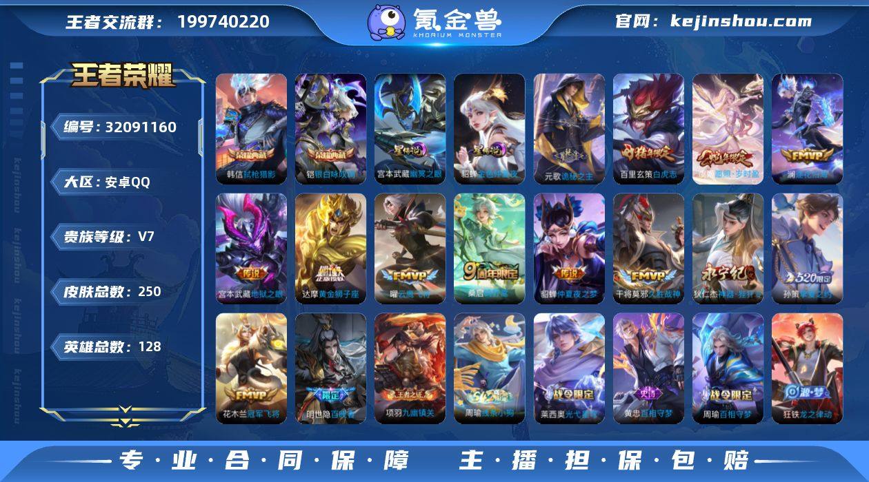【高性价比·银白咏叹调·弑枪猎影·金色仲夏夜·神器狴犴令·诡秘之主·愿照岁时盈·挚爱之约·白虎志·云鹰飞将·冠军飞将·逐花归海·可二次】YXw18010-安卓Q-128英雄-250皮肤-10王者印记-220铭文-贵族积分3w【贵族7】【2典藏·2星传说·13传说·8按键】【因赛季更新游戏段付以上号为准!】 【英雄全皮】:刘禅全皮,元歌全皮,孙权全皮,敖隐全皮 【荣耀典藏】:铠银白咏叹调,韩信弑枪猎影 【星元皮肤】:貂蝉金色仲夏夜,宫本武藏幽冥之眼 【传说皮肤】:元歌诡秘之主,虞姬愿照岁时盈,桑启鸣野蒿,澜逐花归海,狄仁杰神器狴犴令,孙策挚爱之约,曜云鹰飞将,干将莫邪久胜战神,达摩黄金狮子座,百里玄策白虎志,花木兰冠军飞将,貂蝉仲夏夜之梦,宫本武藏地狱之眼 【限定皮肤】:蒙犽顽岩魄,姜子牙天穹之誓,杨戬破阵退雄兵,狄仁杰阴阳师,赵云皇家上将,庄周高山流水,高渐离玩趣恶龙,芈月幻夜卜梦,元歌云间偶戏,元歌无心,马可波罗暗影游猎,狄仁杰魔术师,狄仁杰神器狴犴令,达摩星际陆战队,项羽海滩派对,孙悟空孙行者,李元芳云中旅人,女娲朔望之晖,雅典娜黎明之约,鬼谷子五谷丰年,百里玄策白虎志,百里玄策原初追逐者,公孙离玉兔公主,沈梦溪大漠名商,裴擒虎李小龙,裴擒虎擒涛扼浪,孙策挚爱之约,猪八戒猪悟能,西施玲珑珍味,鲁班大师探海日志,桑启海盐诗旅,艾琳流音漫舞,阿古朵江河有灵,张良古海寻踪,高渐离燃音魔法,妲己灵卜魔法,鬼谷子天穹祈灯,鲁班七号蔬乡物语,李元芳蔬乡物语,刘邦剑破天穹,程咬金群星魔术团,镜青焰无极,项羽苍威无极,周瑜熔金海岸 【年限皮肤】:百里玄策白虎志,虞姬愿照岁时盈 【赛季限定】:沈梦溪大漠名商,李元芳云中旅人,桑启海盐诗旅,裴擒虎擒涛扼浪,鲁班大师探海日志,张良古海寻踪,鬼谷子天穹祈灯,刘邦剑破天穹,姜子牙天穹之誓,东皇太一噬灭天...