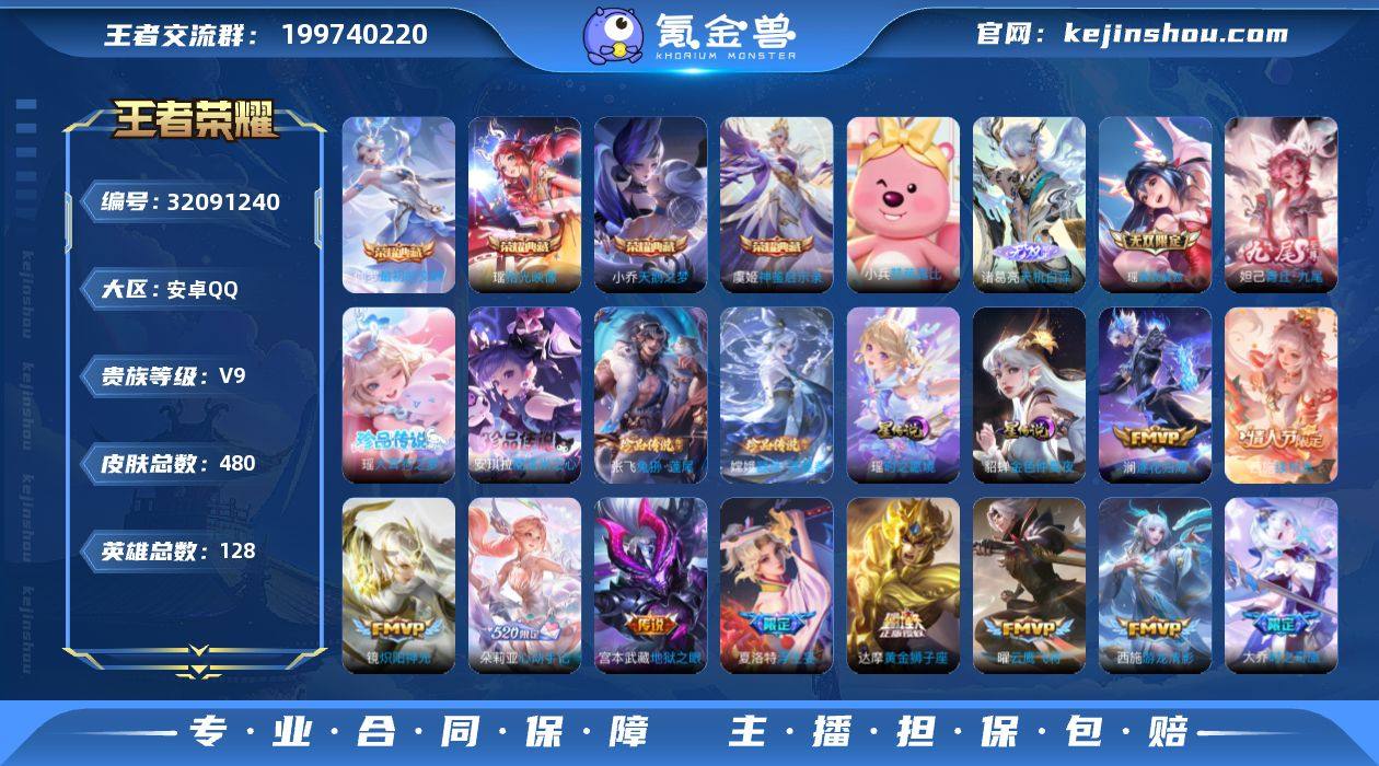 ·妲己全皮·瑶全皮·西施全皮·嫦娥全皮·紫瑶·游龙堇华·金色仲夏夜·天鹅之梦·最初的交响·沧流箭·酷洛米之心·补天·挚爱花嫁·Kuromi时间天幕·可二次】w17997-安卓Q-128英雄-480皮肤-8王者印记-200铭文-贵族积分15w【贵族9】【4典藏·3无双·5珍品·3星传说·39传说·3天幕·27按键】【因赛季更新游戏段付以上号为准!】 【英雄全皮】:妲己全皮,元歌全皮,孙权全皮,瑶全皮,云中君全皮,嫦娥全皮,大司命全皮,敖隐全皮,西施全皮,夏洛特全皮,戈娅全皮,空空儿全皮,影全皮,少司缘全皮 【荣耀典藏】:小乔天鹅之梦,虞姬神鉴启示录,瑶拾光映像,伽罗最初的交响 【无双皮肤】:诸葛亮天机白泽,瑶真我赫兹,妲己青丘九尾 【珍品传说】:伽罗沧流箭,安琪拉酷洛米之心,瑶大耳狗之梦,张飞兔狲蓬尾,嫦娥器灵落星盏 【星元皮肤】:瑶时之愿境,貂蝉金色仲夏夜,西施游龙堇华 【天幕】:天机无算天幕,Kuromi时间天幕,共赏芳华天幕 【传说皮肤】:云缨神骥越千峰,花木兰异界灵契,后羿神树通天,元歌诡秘之主,大司命死亡执政官,西施续相思,女娲愿照千秋盛,妲己愿照众生和,虞姬愿照岁时盈,桑启鸣野蒿,朵莉亚心动手记,云中君群星魔术团,海月金乌负日,澜逐花归海,大乔时之奇旅,东皇太一灼幽烈阳,夏洛特浮生妄,李白诗剑行,王昭君星穹之声,大乔挚爱花嫁,女娲补天,瑶时之祈愿,貂蝉遇见胡旋,王昭君乞巧织情,西施游龙清影,公孙离祈雪灵祝,铠绛天战甲,镜炽阳神光,虞姬启明星使,曜云鹰飞将,刘备时之恋人,张良黄金白羊座,干将莫邪久胜战神,虞姬云霓雀翎,达摩黄金狮子座,后羿黄金射手座,貂蝉仲夏夜之梦,宫本武藏地狱之眼,武则天海洋之心 【限定皮肤】:蒙犽顽岩魄,蔡文姬夏日便利店,大乔绒语心约,虞姬夏日便利店,姜子牙天穹之誓,杨戬破阵退雄兵,狄仁杰阴阳师,赵云皇家上将,妲己热情桑巴,...