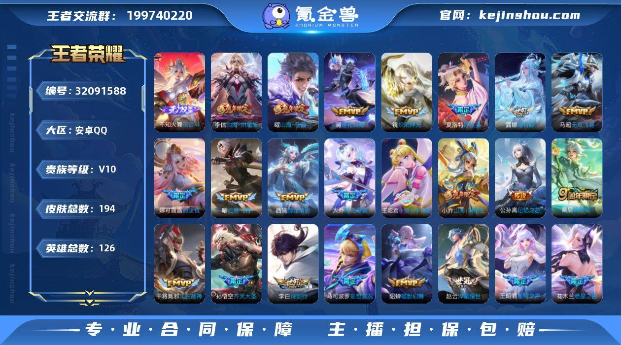 【4812】安卓Q-V9-最强王者段位-128英雄-380皮肤-2典藏皮肤-2珍品传说-31传说-112史诗 【英雄全皮】:嬴政全皮,孙权全皮,苍全皮,哪吒全皮,敖隐全皮,司空震全皮,影全皮 【荣耀典藏】:铠银白咏叹调,瑶拾光映像 【珍品传说】:嫦娥器灵落星盏,鲁班七号江户川柯南 【传说皮肤】:司空震愿照山河定,女娲愿照千秋盛,妲己愿照众生和,澜愿照九州拓,蔡文姬愿照福禄聚,虞姬愿照岁时盈,云缨幻光神枪,嬴政玄雷天君,桑启鸣野蒿,铠冥王哈迪斯,海月金乌负日,孙尚香乘龙问璇玑,花木兰燃星之曲,李信山海炽霜斩,孙尚香音你闪耀,赵云淬星耀世,王昭君乞巧织情,西施游龙清影,镜炽阳神光,虞姬启明星使,曜云鹰飞将,李信一念神魔,貂蝉猫影幻舞,张良黄金白羊座,干将莫邪久胜战神,虞姬云霓雀翎,达摩黄金狮子座,梦奇胖达荣荣,后羿黄金射手座,宫本武藏地狱之眼,孙悟空地狱火 【限定皮肤】:铠冥王哈迪斯,蔡文姬夏日便利店,大乔绒语心约,虞姬夏日便利店,姜子牙天穹之誓,李白谪仙醉月,狄仁杰阴阳师,赵云皇家上将,赵云引擎之心,嬴政优雅恋人,嬴政白昼王子,孙尚香蔷薇恋人,钟无艳超时空战士,芈月幻夜卜梦,吕布御风骁将,元歌云间偶戏,元歌无心,甄姬落雪兰心,典韦岱宗,马可波罗山海玄木吟,狄仁杰魔术师,狄仁杰万华元夜,达摩沙漠行僧,项羽海滩派对,老夫子醍醐杖,程咬金演武夺筹,韩信傲雪梅枪,王昭君午后时光,兰陵王金庭之子,花木兰燃星之曲,亚瑟潮玩骑士王,孙悟空至尊宝,孙悟空大圣娶亲,孙悟空孙行者,后羿辉光之辰,后羿如梦令,张飞虎魄,李元芳云中旅人,虞姬启明星使,钟馗神迹守卫,钟馗驱傩正仪,哪吒逐梦之翼,雅典娜单词大作战,蔡文姬繁星吟游,鬼谷子原初探秘者,鬼谷子五谷丰年,黄忠烈魂,黄忠火炮绅士,铠青龙志,苏烈千军破阵,沈梦溪大漠名商,明世隐疑决卦...