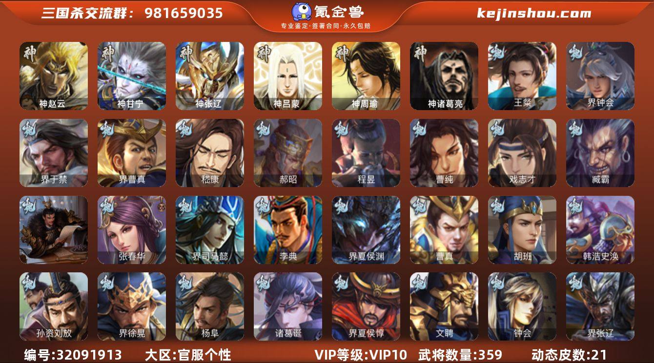 神赵云,神甘宁,神张辽,神诸葛亮,王粲,界钟会,界于禁,界曹真,嵇康,郝昭,曹纯,戏志才,程昱,马云騄,谋赵云,谋马超,张星彩,沙摩柯,花鬘,董允,留赞,界朱然,界徐盛,贺齐,左慈,张让,苏飞,麹义,沮授,界李儒,公孙康,杜预,许攸,兀突骨,士燮,神吕蒙,神周瑜,SP关羽,SP蔡文姬,乐进,曹昂,诸葛诞,朱灵,文聘,SP姜维,张春华,钟会,曹冲,郭淮,满宠,界王异,界曹操,界司马懿,界夏侯惇,界张辽,界许褚,界郭嘉,李典,曹真,韩浩史涣,陈群,曹叡,曹休,钟繇,司马朗,王基,李通,郭皇后,孙资刘放,辛宪英,界甄姬,吕虔,鲁芝,蒯越蒯良,界典韦,界荀彧,界徐晃,杜畿,界曹丕,毌丘俭,界邓艾,张恭,界曹植,界曹彰,界满宠,界郭淮,卞夫人,界陈群,华歆,杨阜,谋徐晃,胡班,界夏侯渊,臧霸,SP孙尚香,关银屏,夏侯霸,马良,关兴张苞,廖化,界马岱,关平,简雍,刘封,界法正,界关兴张苞,界刘备,界关羽,界张飞,界赵云,界马超,SP徐庶,吴懿,周仓,张松,刘谌,夏侯氏,糜竺,马忠,孙乾,李严,黄皓,吴苋,秦宓,界黄月英,界诸葛亮,赵统赵广,严颜,界伊籍,界卧龙诸葛,界庞统,界孟获,界祝融,陈到,界姜维,界刘禅,吕凯,张翼,杨仪,邓芝,傅肜,陈震,费祎,糜夫人,王甫赵累,向宠,宗预,刘巴,谋庞统,谋姜维,谋张飞,诸葛果,界魏延,蒋琬费祎,甘夫人,鲁肃,孙茹,凌操,诸葛恪,诸葛瑾,孙鲁育,程普,韩当,潘璋马忠,虞翻,朱然,界甘宁,界吕蒙,界黄盖,界周瑜,界大乔,界陆逊,孙鲁班,朱桓,顾雍,孙休,朱治,全琮,步骘,阚泽,孙登,岑昏,徐氏,薛综,界孙权,界孙尚香,潘濬,SP庞统,孙亮,严畯,界孙坚,吕岱,周鲂,周妃,陆抗,界孙策,界张昭张纮,许贡,卫温诸葛直,界吴国太,界凌统,界韩当,界程普,界虞翻,界潘璋马忠,陈武董袭,孙翊,蒋钦,吕...