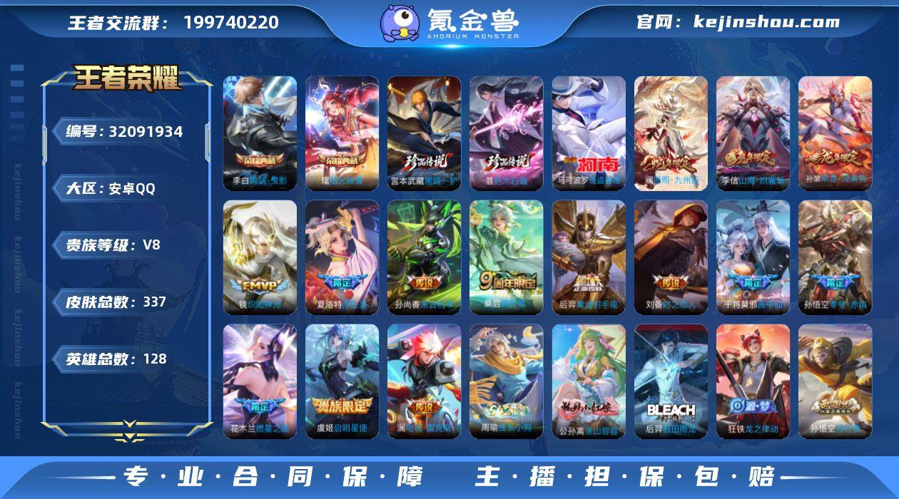 不可二次 安卓王者和平一体号 5粉套5特效 V8-永恒钻石IV段位-128英雄-337皮肤-2典藏皮肤-3珍品传说-14传说-107史诗 QW263605 【英雄全皮】:孙权全皮,戈娅全皮 【荣耀典藏】:李白鸣剑曳影,瑶拾光映像 【珍品传说】:宫本武藏黑崎一护,暃朽木白哉,马可波罗怪盗基德 【传说皮肤】:澜愿照九州拓,桑启鸣野蒿,孙策乘龙淬吴钩,澜电玩雷克斯,夏洛特浮生妄,干将莫邪画中仙,花木兰燃星之曲,李信山海炽霜斩,镜炽阳神光,虞姬启明星使,孙悟空零号赤焰,刘备时之恋人,后羿黄金射手座,孙尚香末日机甲 【限定皮肤】:蔡文姬夏日便利店,大乔绒语心约,虞姬夏日便利店,姜子牙天穹之誓,李白谪仙醉月,狄仁杰阴阳师,赵云皇家上将,赵云龙胆,墨子神迹守卫,孙尚香蔷薇恋人,庄周高山流水,高渐离玩趣恶龙,钟无艳超时空战士,扁鹊奇幻香踪,白起夜都怪侠,芈月白晶晶,芈月幻夜卜梦,吕布猎兽之王,吕布御风骁将,周瑜赤莲之焰,元歌云间偶戏,元歌无心,甄姬落雪兰心,马可波罗山海玄木吟,狄仁杰魔术师,狄仁杰万华元夜,达摩星际陆战队,达摩沙漠行僧,项羽海滩派对,老夫子醍醐杖,老夫子航海奇遇记,关羽百相守梦,安琪拉魔法小厨娘,程咬金演武夺筹,王昭君午后时光,兰陵王金庭之子,花木兰默契交锋,花木兰燃星之曲,亚瑟潮玩骑士王,孙悟空美猴王,孙悟空大圣娶亲,孙悟空零号赤焰,孙悟空孙行者,后羿圣弓游侠,李元芳云中旅人,虞姬启明星使,钟馗驱傩正仪,杨玉环遇见飞天,杨戬潮玩骑兵,女娲朔望之晖,干将莫邪真爱魔法,干将莫邪画中仙,雅典娜单词大作战,鬼谷子原初探秘者,鬼谷子五谷丰年,黄忠烈魂,黄忠火炮绅士,苏烈千军破阵,百里玄策原初追逐者,弈星混沌棋,沈梦溪大漠名商,沈梦溪匿光破解者,明世隐疑决卦,明世隐吟游魔法,裴擒虎李小龙,裴擒虎擒涛扼浪,狂铁电玩高手,米莱狄胡...
