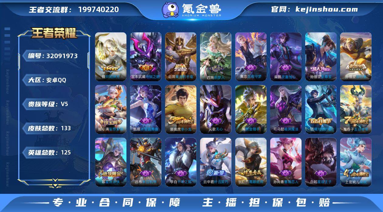 LK26359 至尊宝 安卓Q-V5-永恒钻石III段位-125英雄-133皮肤-3传说-36史诗 【传说皮肤】:镜炽阳神光,后羿黄金射手座,宫本武藏地狱之眼 【限定皮肤】:姜子牙天穹之誓,狄仁杰阴阳师,赵云皇家上将,孙尚香蔷薇恋人,元歌无心,项羽海滩派对,孙悟空至尊宝,孙悟空孙行者,李元芳云中旅人,鬼谷子五谷丰年,沈梦溪大漠名商,裴擒虎李小龙,裴擒虎擒涛扼浪,云中君纤云弄巧,上官婉儿梁祝,嫦娥暖冬兔眠,鲁班大师探海日志,桑启海盐诗旅,暃星界游侠,阿古朵江河有灵,张良古海寻踪,鬼谷子天穹祈灯,姬小满妄想食味,刘邦剑破天穹 【赛季限定】:沈梦溪大漠名商,李元芳云中旅人,桑启海盐诗旅,裴擒虎擒涛扼浪,鲁班大师探海日志,张良古海寻踪,鬼谷子天穹祈灯,刘邦剑破天穹,姜子牙天穹之誓,太乙真人谧流熔炉,甄姬逆浪荇歌 【战令限定】:暃星界游侠,嫦娥暖冬兔眠 【史诗皮肤】:西施织梦人,黄忠百相守梦,扁鹊灵蛊蚀心,姬小满妄想食味,阿古朵江河有灵,暃星界游侠,元歌无心,鬼谷子五谷丰年,澜赏金猎手,司马懿暗渊魔法,孙悟空孙行者,云中君纤云弄巧,裴擒虎李小龙,上官婉儿梁祝,狄仁杰鹰眼统帅,阿轲节奏热浪,白起星夜王子,程咬金功夫厨神,李元芳逐浪之夏,蔡文姬舞动绿茵,铠曙光守护者,百里守约特工魅影,兰陵王暗隐猎兽者,小乔缤纷独角兽,孙悟空至尊宝,吕布末日机甲,李白千年之狐,刘禅绅士熊喵,墨子金属风暴,嬴政摇滚巨星,嬴政暗夜贵公子,孙尚香水果甜心,孙尚香蔷薇恋人,宫本武藏鬼剑武藏,甄姬冰雪圆舞曲,赵云皇家上将 【其他皮肤】:艾琳鹤鸣心笺,哪吒罗小黑战记,鬼谷子克喵,莱西奥踏浪烽翎,庄周锦麟游梦,甄姬逆浪荇歌,白起死霸装,姬小满小满鸭,露娜命运加冕,张良灵野札记,姜子牙星梦巡礼,太乙真人谧流熔炉,姜子牙天穹之誓,刘邦剑破天穹,鬼谷子天穹祈灯,...