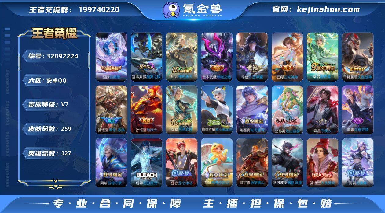 安卓Q-V7 幻阙歌!259皮肤-1典藏皮肤-8传说-82史诗-90限定 【英雄全皮】:孙权全皮,空空儿全皮,影全皮 【荣耀典藏】:貂蝉幻阙歌 【传说皮肤】:后羿神树通天,云缨幻光神枪,桑启鸣野蒿,孙悟空零号赤焰,李信一念神魔,干将莫邪久胜战神,宫本武藏地狱之眼,孙悟空地狱火 【限定皮肤】:蔡文姬夏日便利店,虞姬夏日便利店,姜子牙天穹之誓,狄仁杰阴阳师,赵云皇家上将,妲己时之彼端,芈月白晶晶,元歌云间偶戏,元歌无心,夏侯惇朔风刀,甄姬落雪兰心,马可波罗暗影游猎,狄仁杰魔术师,狄仁杰万华元夜,项羽海滩派对,老夫子醍醐杖,程咬金演武夺筹,花木兰默契交锋,亚瑟潮玩骑士王,孙悟空大圣娶亲,孙悟空零号赤焰,李元芳银河之约,李元芳云中旅人,钟馗驱傩正仪,杨戬潮玩骑兵,雅典娜单词大作战,鬼谷子原初探秘者,百里玄策原初追逐者,弈星混沌棋,沈梦溪星空之诺,明世隐疑决卦,裴擒虎李小龙,裴擒虎擒涛扼浪,云中君纤云弄巧,猪八戒西部大镖客,上官婉儿神器万象笔,嫦娥拒霜思,嫦娥暖冬兔眠,西施玲珑珍味,蒙犽狂想玩偶喵,鲁班大师探海日志,桑启海盐诗旅,暃星界游侠,艾琳女武神,艾琳流音漫舞,司空震地狱燃心,张良古海寻踪,蒙犽百解令,蒙恬荣光圣徽,高渐离燃音魔法,妲己灵卜魔法,鬼谷子天穹祈灯,伽罗琥珀纪元,沈梦溪龙舞盛年,刘邦剑破天穹,刘备异域游侠 【赛季限定】:夏侯惇朔风刀,狄仁杰万华元夜,老夫子醍醐杖,程咬金演武夺筹,张良古海寻踪,李元芳云中旅人,钟馗驱傩正仪,鬼谷子原初探秘者,百里玄策原初追逐者,弈星混沌棋,明世隐疑决卦,裴擒虎擒涛扼浪,鲁班大师探海日志,桑启海盐诗旅,鬼谷子天穹祈灯,蒙恬荣光圣徽,刘邦剑破天穹,姜子牙天穹之誓 【战令限定】:蔡文姬夏日便利店,虞姬夏日便利店,元歌云间偶戏,甄姬落雪兰心,马可波罗暗影游猎,艾琳流...