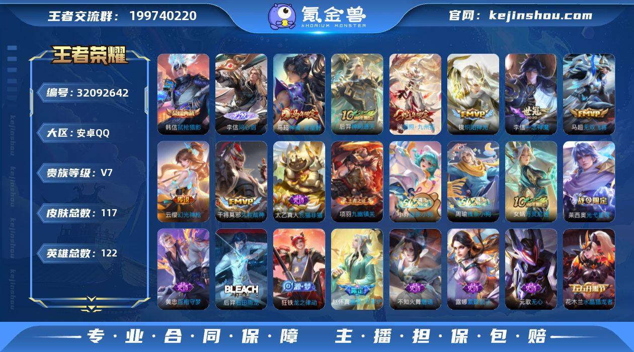 CHC51005 李信问心剑/安卓Q-V7-最强王者段位-122英雄-117皮肤-1典藏皮肤-1无双-8传说-38史诗 【英雄全皮】:敖隐全皮 【荣耀典藏】:韩信弑枪猎影 【无双皮肤】:李信问心剑 【传说皮肤】:马超神骥逐星野,后羿神树通天,澜愿照九州拓,云缨幻光神枪,马超无双飞将,镜炽阳神光,李信一念神魔,干将莫邪久胜战神 【限定皮肤】:姜子牙天穹之誓,狄仁杰阴阳师,赵云皇家上将,高渐离玩趣恶龙,元歌无心,狄仁杰魔术师,项羽海滩派对,兰陵王金庭之子,李元芳云中旅人,百里玄策原初追逐者,裴擒虎擒涛扼浪,鲁班大师探海日志,桑启海盐诗旅,张良古海寻踪,鬼谷子天穹祈灯,刘邦剑破天穹,关羽决胜骁骑,周瑜熔金海岸 【年限皮肤】:澜愿照九州拓 【赛季限定】:兰陵王金庭之子,李元芳云中旅人,桑启海盐诗旅,裴擒虎擒涛扼浪,鲁班大师探海日志,张良古海寻踪,鬼谷子天穹祈灯,刘邦剑破天穹,姜子牙天穹之誓,东皇太一噬灭天穹,太乙真人谧流熔炉,钟馗虚灵犬护,甄姬逆浪荇歌,亚瑟荣光之誓,百里玄策原初追逐者,项羽九幽镇关 【战令限定】:莱西奥光弋星穹,明世隐往忆晖光,周瑜线条小狗,小乔线条小狗 【史诗皮肤】:太乙真人瓦猫非猫,周瑜线条小狗,小乔线条小狗,项羽九幽镇关,女娲万灵启世,莱西奥光弋星穹,黄忠百相守梦,后羿石田雨龙,狂铁龙之律动,狄仁杰绮世丹青,赵怀真器灵浮梦炉,关羽决胜骁骑,元歌无心,百里玄策热力回旋,百里玄策原初追逐者,不知火舞魅语,狄仁杰鹰眼统帅,阿轲节奏热浪,李元芳逐浪之夏,百里守约特工魅影,雅典娜冰冠公主,兰陵王暗隐猎兽者,夏侯惇乘风破浪,花木兰水晶猎龙者,张飞乱世虎臣,吕布末日机甲,李白千年之狐,曹操幽灵船长,吕布圣诞狂欢,墨子金属风暴,妲己魅力维加斯,嬴政暗夜贵公子,孙尚香水果甜心,宫本武藏鬼剑武藏,廉颇地狱岩魂,狄仁杰...