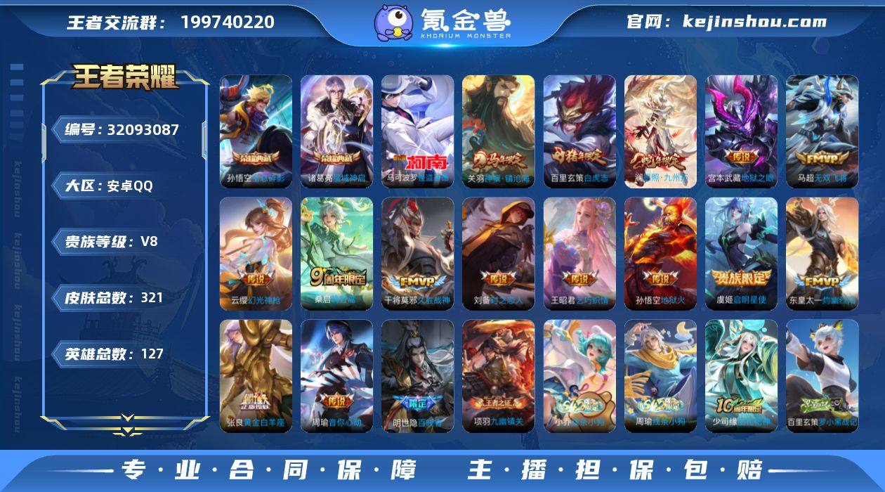贵族8-贵族积分53585-321皮2典藏15传说0无双1珍品传说-7个英雄全皮 安卓手Q396区321皮2典藏15传说0无双1珍品传说V8 营地ID1785182217非凡王者【珍品传说皮肤】:怪盗基德【荣耀典藏】:星域神启,全息碎影【优质限定皮肤】:白虎志,神骥·镇沧海,无双飞将,至尊宝【传说皮肤】:白虎志,启明星使,灼幽烈阳,神骥·镇沧海,久胜战神,地狱火,无双飞将,地狱之眼,幻光神枪,愿照·九州拓,音你心动,鸣野蒿,乞巧织情,黄金白羊座,时之恋人【史诗皮肤】:百晓客,暗夜贵公子,线条小狗,舞动绿茵,九幽镇关,罗小黑战记,修罗,光弋星穹,心灵战警,电玩小子,巫礼祀神,李小龙,猫狗日记,魅语,涂山容容,猫狗日记,百相守梦,万物之道,石田雨龙,德古拉伯爵,星界战将,箭羽风息,鸭鸭历险记,龙之律动,化蝶舞,御风骁将,天才门将,功夫厨神,乐园奇幻夜,地狱岩魂,偶像歌手,器灵·浮梦炉,原初追逐者,乘风破浪,茶境仙,乱世虎臣,龙骑士,无限星赏官,星夜王子,时之恋人,迷踪丽影,百相守梦,月团寄思,节奏热浪,冰冠公主,梁祝,水晶猎龙者,青蛇,破空之剑,圣诞狂欢,白蛇,至尊宝,顽岩魄,鹰眼统帅,绅士熊喵,摇滚巨星,暗隐猎兽者,青焰无极,鬼剑武藏,苍穹之光,妄想食味,心灵骇客,蔬乡物语,圣诞恋歌,未来纪元,大圣娶亲,特工魅影,魔术师,百解令,岱宗,冰雪圆舞曲,江河有灵,暗渊魔法,云间偶戏,驭风魔法,逐浪之夏,电玩·爆裂旋风,千年之狐,曙光守护者,女仆咖啡,末日机甲,皇家上将,无心,水果甜心,五谷丰年,火炮绅士,幽灵船长,傲雪梅枪,紫霞仙子,真爱魔法,金属风暴,孙行者,魅力维加斯