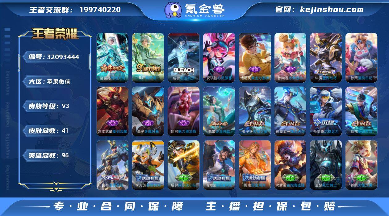 苹果WX-V3-永恒钻石III段位-有限制-百星印记-诸葛小国12194w-墨子小国11588W-金标甄姬8484-中路40段-游走25段-96英雄-41皮肤-2传说-9史诗 【传说皮肤】:桑启鸣野蒿,诸葛亮时雨天司 【限定皮肤】:姜子牙天穹之誓,狄仁杰阴阳师,诸葛亮时雨天司,刘邦剑破天穹,程咬金群星魔术团,周瑜熔金海岸 【年限皮肤】:诸葛亮时雨天司 【赛季限定】:刘邦剑破天穹,姜子牙天穹之誓,东皇太一噬灭天穹,甄姬逆浪荇歌,牛魔星界战将 【史诗皮肤】:后羿石田雨龙,牛魔星界战将,孙策猫狗日记,安琪拉心灵骇客,诸葛亮黄金分割率,墨子金属风暴,妲己魅力维加斯,孙尚香水果甜心,宫本武藏鬼剑武藏 【其他皮肤】:甄姬逆浪荇歌,吕布逐霄战戟,东皇太一噬灭天穹,周瑜熔金海岸,姜子牙天穹之誓,程咬金群星魔术团,刘邦剑破天穹,李元芳妄想特派,沈梦溪鲨炮海盗猫,孙膑归虚梦演,诸葛亮掌控之力,孙尚香沉稳之力,刘备汉昭烈帝,狄仁杰阴阳师,后羿阿尔法小队,甄姬花好人间,花木兰兔女郎,亚瑟死亡骑士,孙膑天使之翼,安琪拉玩偶对对碰,武则天东方不败,白起白色死神,芈月红桃皇后,澜孤猎,盾山极冰防御线,弈星踏雪寻梅,大乔伊势巫女,诸葛亮星航指挥官,关羽天启骑士,张良一千零一夜 【营地ID】:1688526645