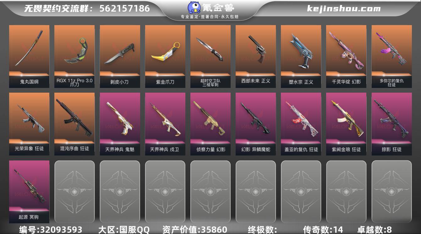 【自带包赔 可赔三倍】:库存价值 35860 当前铂金 三菱+超多T0狂徒 性价比热门库存号 可包人脸 【近战】: 超时空卫队 三棱军刺, 紫金爪刀, 鬼丸国纲, 剥皮小刀, RGX 11z Pro//3.0 爪刀 【狂徒】: 光荣异象 狂徒, 多弥尔的复仇 狂徒, 紫阙金琅 狂徒, 掠影 狂徒, 盖亚的复仇 狂徒, 混沌序曲 狂徒 【幻影】: 异鳞魔蛇 幻影, 千灵华绽 幻影, 侦察力量 幻影 【冥驹】: 起源 冥驹 【正义】: 西部未来 正义, 塑水宗 正义 【戍卫】: 天界神兵 戍卫 【鬼魅】: 天界神兵 鬼魅 【概要】: 总皮肤 64 终极0 传奇14 卓越8 刀皮5 英雄28 LV243 历史最高: 钻石当前段位:铂金 已使用980 R点 剩余 165 R点 不可二次 卡面、挂饰、其他皮肤请看截图 道具、段位等以实际验号为准。如账号因没有维护,赛季更新等不可抗因素发生变化,不属于账号质量问题"