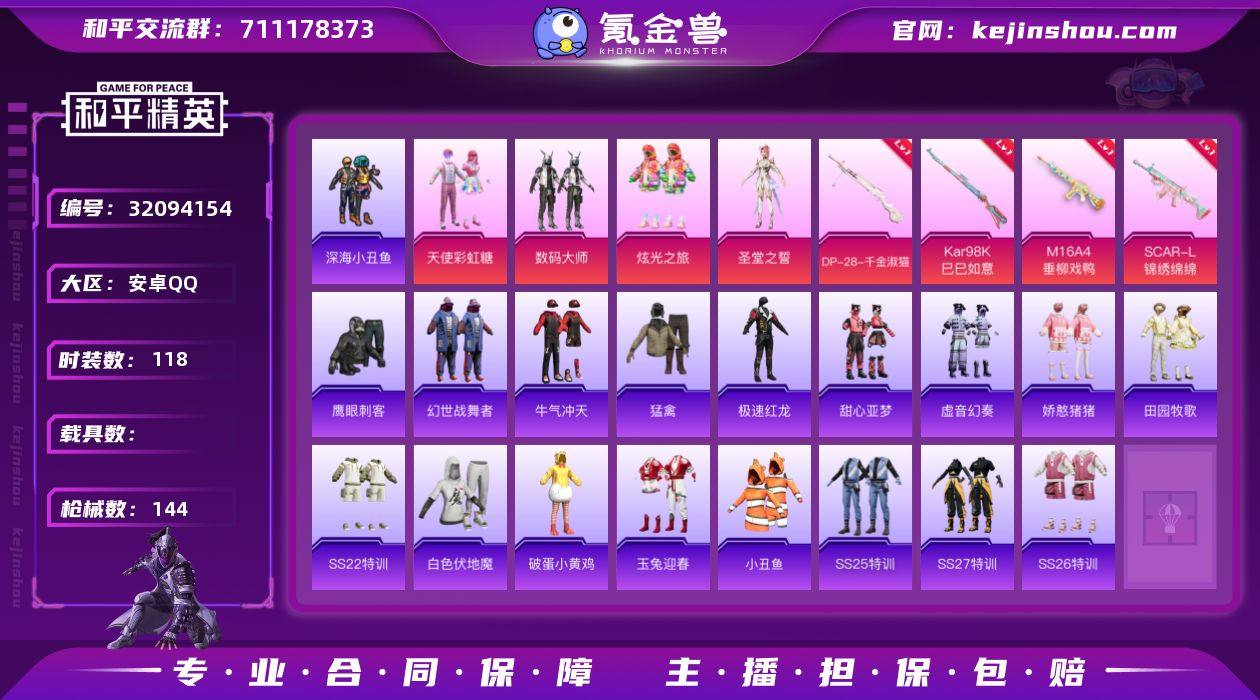 4粉装 4粉枪 118套装 144枪皮 25热门 天使彩虹糖 数码大师 炫光之旅 黄色名流 牛气满满 猛禽 破晓战魂 耀粉歌者 飞行日记 莱茵河畔 福星高照 白啸长虹 龟仙人 无暇誓言 果汁能量 冷焰舞者 空岛之星 惊鸿侠骨 萌趣咩咩 竞技名士 娇憨猪猪 锦衣飞扬 深蓝色名流 元气发射 竞技角斗士 酸甜橘柚 酒红色名流 战地督导 灼焰舞者 深海梦境 龙的传人 玉兔迎春 田园牧歌 战地菁英 轻风白浪 湖蓝色名流 蓝色守护者 光之冒险 绯格组合 冰冻风暴 完美偶像 街头潮人 蓝彩潮人 绮丽涂鸦 耀眼新星 缤纷果语 暖心橘喵 沙漠毒蛇 幻世战舞者 麻辣教官 人气偶像 幻影武者 都市魅力 探宝勇士 SCAR-L-锦绣绵绵(5级) M16A4-垂柳戏鸭(1级) DP-28-千金淑猫(5级) Kar98K-巳巳如意(5级) 鹰眼刺客 破蛋小黄鸡 小丑鱼 极速红龙 白色伏地魔 SS27特训 SS26特训 SS25特训 SS22特训 SCAR-L-玉兔迎春 GROZA-田园牧歌 Mk47-乌木金纹 Mini14-旋转彩虹 UZI-娇憨猪猪 UMP45-炫光之旅 M249-彩虹符号 MG3-幻世战舞者 AKM-虎虎生威 M762-暗夜鎏金 长空猛禽 虚音幻奏 甜心亚梦 牛气冲天 霓虹街区 光之冒险尾迹 甜蜜誓约飞行器