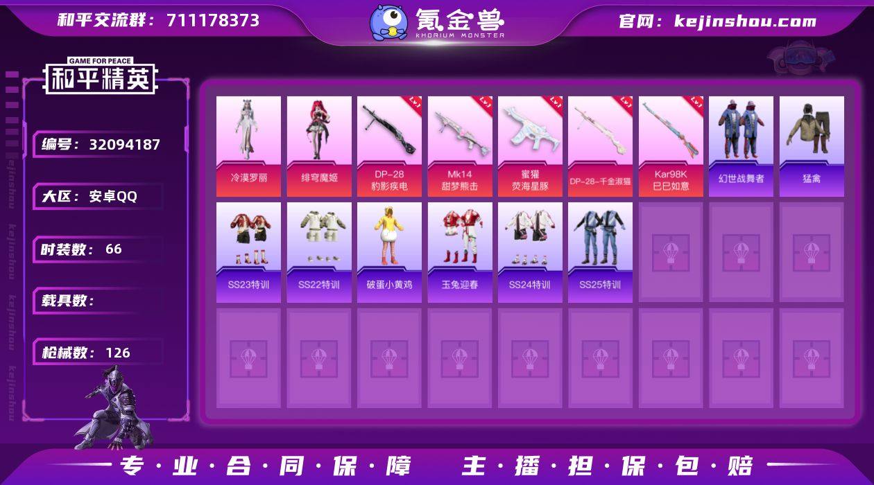 2粉装 5粉枪 66套装 126枪皮 15热门 滨海厨神 黄色名流 猛禽 甜蜜告白 破晓战魂 耀粉歌者 莱茵河畔 柠萌假日 王牌教练 龟仙人 空岛之星 都市漫游者 惊鸿侠骨 竞技名士 锦衣飞扬 绝对偶像 玉兔迎春 湖蓝色名流 光之冒险 耀眼新星 幻世战舞者 麻辣教官 热血青春 角色-冷漠罗丽 角色-绯穹魔姬 Mini14-耀粉歌者 S12K-幻世战舞者 M416-红色方程式 汤姆逊-耀粉歌者 AUG-耀粉歌者 S12K-玩趣呆呆 SCAR-L-甜蜜旋律 QBZ-未来歌姬 DP-28-甜蜜旋律 AC-VAL-天降萌叽 SKS-未来歌姬 AC-VAL-乌木金纹 DP-28-齐天大圣 蜜獾-天降萌叽 MG3-惊鸿侠骨 DP-28-彩虹符号 SKS-夜灯 M24-炫彩节奏 M24-乌木金纹 QBZ-彩虹符号 莫辛纳甘-乌木金纹 S1897-小鹦鹉BEBE AMR-乌木金纹 S12K-夜灯 M200-惊鸿侠骨 UZI-啾咪啾咪 UMP45-夜灯 M762-彩虹甜喵 VSS-彩虹符号 Mk14-乌木金纹 爆炸猎弓-惊鸿侠骨 SLR-彩虹符号 M417-惊鸿侠骨 UZI-天降萌叽 UMP45-生命誓言 AKM-破晓战魂 SCAR-L-炫彩节奏 M249-诡夜天鹅 SCAR-L-夜灯 SKS-炫彩节奏 M249-星之彼岸 Vector-彩虹符号 P90-乌木金纹 M16A4-幻世战舞者 SCAR-L-红色方程式 蜜獾-荧海星豚(4级) DP-28-千金淑猫(5级) Kar98K-巳巳如意(5级) Mk14-甜梦熊击(5级) DP-28-豹影疾电(5级) 破蛋小黄鸡 SS25特训 SS24特训 SS23特训 SS22特训 Mk47-洛神天依 SCAR-L-玉兔迎春 M762-彩虹符号 Mk47-乌木金纹 UMP45-蓝色火焰 M249-彩虹符号 MG3-幻世战舞者 AKM-星之彼岸 GROZA-彩虹符号 长空猛禽 光之冒险尾迹 星之彼岸飞行器 时光之吻飞行器 戏水时光飞行器