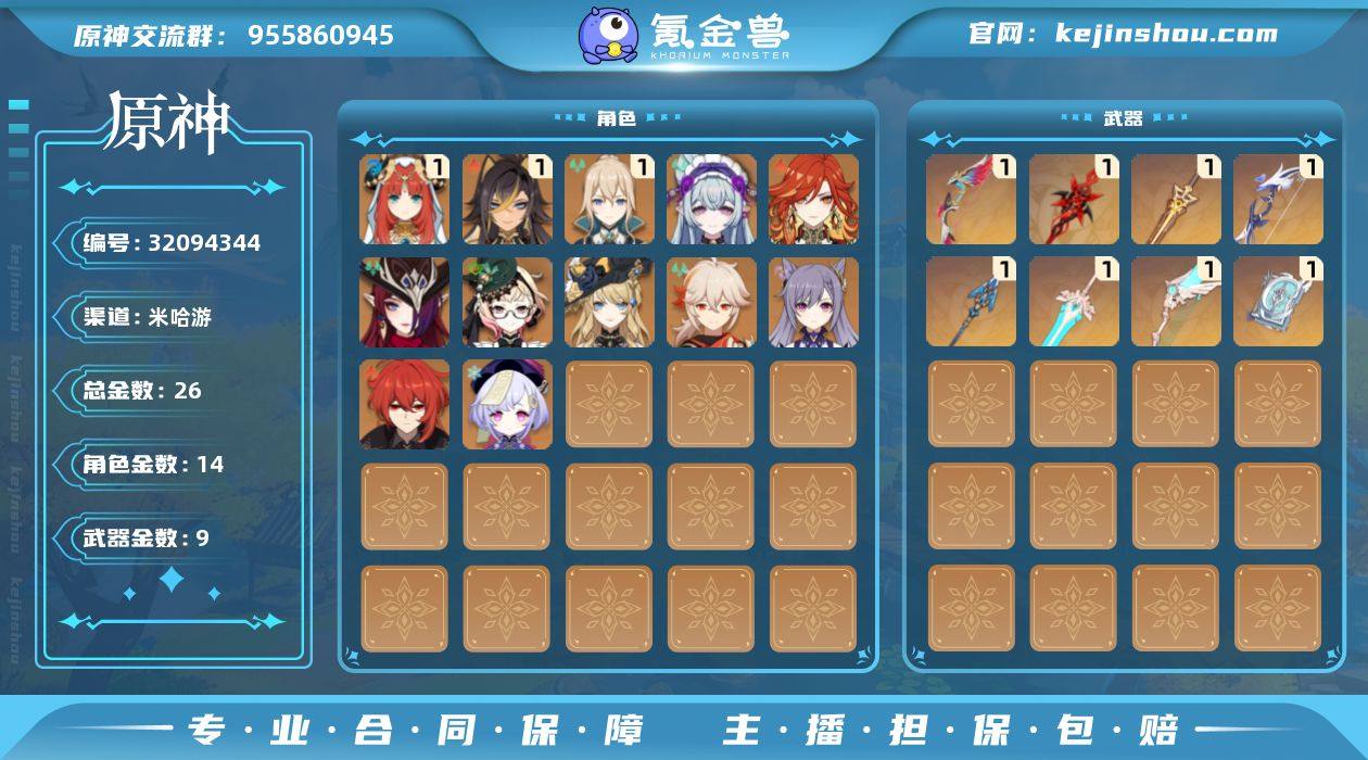 【3792】57级/26黄/女主/14个五星角色/9个五星武器 0命娜维娅,1命迪希雅,1命妮露,0命枫原万叶,0命刻晴,0命七七,1命琴,0命迪卢克,0命艾梅莉埃,0命恰斯卡,0命玛薇卡,0命梦见月瑞希,0命丝柯克,0命杜林,精1赤月之形,精1圣显之钥,精1若水,精1息灾,精1四风原典,精1天空之翼,精1天空之傲,精1星鹫赤羽
