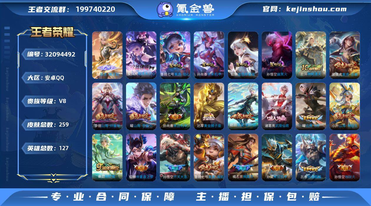 可换绑【高性价比·曜无双·齐天大圣·枫霜尽·武陵仙君·兔年全套·傲雪梅枪·朱雀志·多传说限定号·积分夺宝幸运值325】幸运值325 7按键,4星传说,10王者印记,五级铭文140,可二次KK9326,安卓Q-V8-259皮肤-1无双-1珍品传说-21传说-77史诗【英雄全皮】:孙权全皮,橘右京全皮,空空儿全皮【无双皮肤】:曜器灵螭龙剑【珍品传说】:安琪拉酷洛米之心【星元皮肤】:貂蝉金色仲夏夜,孙悟空幽冥火,孙尚香未来机甲,鲁班七号寅虎焰心【传说皮肤】:后羿神树通天,桑启鸣野蒿,赵云乘龙铭钟鼎,孙悟空齐天大圣,小乔山海琳琅生,曜山海苍雷引,李信山海炽霜斩,吕布怒海麟威,橘右京枫霜尽,孙尚香音你闪耀,孙策末日机甲,裴擒虎寅虎赤拳,鲁班七号寅虎瑞焰,铠绛天战甲,虞姬启明星使,曜云鹰飞将,达摩黄金狮子座,诸葛亮武陵仙君,貂蝉仲夏夜之梦,孙尚香末日机甲,孙悟空地狱火【限定皮肤】:姜子牙天穹之誓,杨戬破阵退雄兵,狄仁杰阴阳师,小乔山海琳琅生,赵云皇家上将,墨子神迹守卫,墨子降魔,鲁班七号寅虎瑞焰,高渐离玩趣恶龙,钟无艳超时空战士,白起夜都怪侠,芈月幻夜卜梦,元歌无心,甄姬落雪兰心,马可波罗山海玄木吟,狄仁杰魔术师,狄仁杰万华元夜,达摩沙漠行僧,项羽海滩派对,程咬金演武夺筹,露娜一生所爱,韩信飞衡,韩信傲雪梅枪,王昭君午后时光,兰陵王金庭之子,橘右京枫霜尽,亚瑟潮玩骑士王,孙悟空齐天大圣,李元芳云中旅人,虞姬启明星使,钟馗驱傩正仪,干将莫邪胡桃夹子,蔡文姬繁星吟游,鬼谷子原初探秘者,鬼谷子五谷丰年,诸葛亮武陵仙君,大乔白鹤梁神女,黄忠火炮绅士,百里玄策原初追逐者,百里守约朱雀志,沈梦溪大漠名商,明世隐吟游魔法,裴擒虎寅虎赤拳,裴擒虎擒涛扼浪,狂铁电玩高手,瑶山海碧波行,云中君纤云弄巧,云中君时之祈愿,李信山海炽霜斩,上官婉儿梁祝,上官...