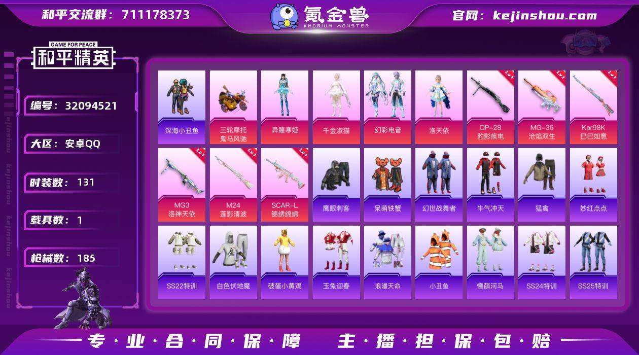 苹果 手Q-8粉装-2特效枪-1载具-1粉色飞行器-81591热力值-16王牌印记-202套装-267枪皮 【热门品类】:粉装-音爆索尼克,套装-浪漫天命,套装-奇异狩猎者,套装-龟仙人,套装-粉红小猪 【粉色套装】:粉装-深渊皇后,粉装-冰霜白皇,粉装-音爆索尼克,粉装-瑰丽时代,角色-呆萌星弥,角色-小可学妹,角色-智耀战神,粉装-幻彩电音 【粉色枪皮等级】:Kar98K-巳巳如意(五级),DP-28-豹影疾电(五级) 【粉色载具】:玛莎拉蒂Ghibli(粉) 【粉色枪皮】:Kar98K-巳巳如意,DP-28-豹影疾电 【粉色飞行器】:齐天大圣飞行器 【粉色降落伞】:神秘黑猫降落伞,古堡领主降落伞,繁花小夜曲降落伞,潮汐统领降落伞,碧影闪光降落伞,垂柳戏鸭降落伞,旋转彩虹降落伞,未来歌姬降落伞,圣堂之誓降落伞,临安公主降落伞,鬼刀降落伞,星穹咏叹调降落伞,异瞳寒姬降落伞 【稀有套装】:套装-龟仙人,套装-巳巳如意,套装-先驱飞行员,套装-燕燕于飞,套装-鱼渊荷华,套装-粉恋花,套装-紫幽梦,套装-蓝冰羽,套装-星影赞美诗,套装-霓虹热舞,套装-彩虹兔,套装-云朵鹅,套装-雪绒豹 【稀有枪皮】:AKM-PEL轰鸣竞梦者,AKM-夜灯,AKM-小鹦鹉BEBE,AKM-彩虹符号,AKM-灼热熔岩,AKM-破晓战魂,AKM-萌趣颜团子,AKM-萝萝小趴兔,AKM-虎虎生威,AKM-霓虹街区,M16A4-幻世战舞者,M16A4-机械英豪,M16A4-甜心亚梦,M16A4-红色方程式,M16A4-蓝色火焰,SCAR-L-炫彩节奏,SCAR-L-玉兔迎春,SCAR-L-红色方程式,SCAR-L-黄金龙骨,SCAR-L-龙宫之主,M416-夜灯,M416-生命誓言,M416-神秘黑猫,M416-糯团青竹,M416-红色方程式,M416-罗小黑,M416-蓝色火焰,M416-萌萌史莱姆,GROZA-异彩先驱,GROZA-懵萌河马,GROZA-治愈之星,GROZA-田园牧歌,GROZA-黑色刀锋,AUG-耀粉歌者,QBZ-原初圣火,QBZ-彩虹符号,QBZ-未来歌姬,QBZ-飞驰魅影,...