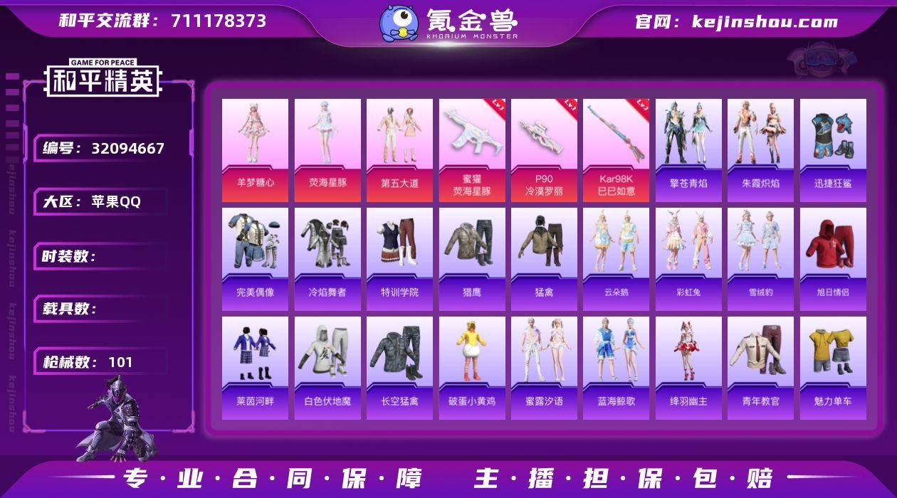 】c26914-【可二次】【因赛季更新游戏段付以上号为准!】 苹果Q-3粉装6特效枪2热门67套装101枪皮 8印记 历史无敌战神 【3粉装】 荧海星豚 羊梦糖心 第五大道 【6特效枪】 P90-冷漠罗丽 (7级) Kar98K-巳巳如意 (5级) DP-28-豹影疾电 (5级) 蜜獾-荧海星豚 (7级) Mk14-福马献瑞 (5级) ACE32-萌骑漫游 (5级) 【2热门】 迅捷狂鲨 破蛋小黄鸡