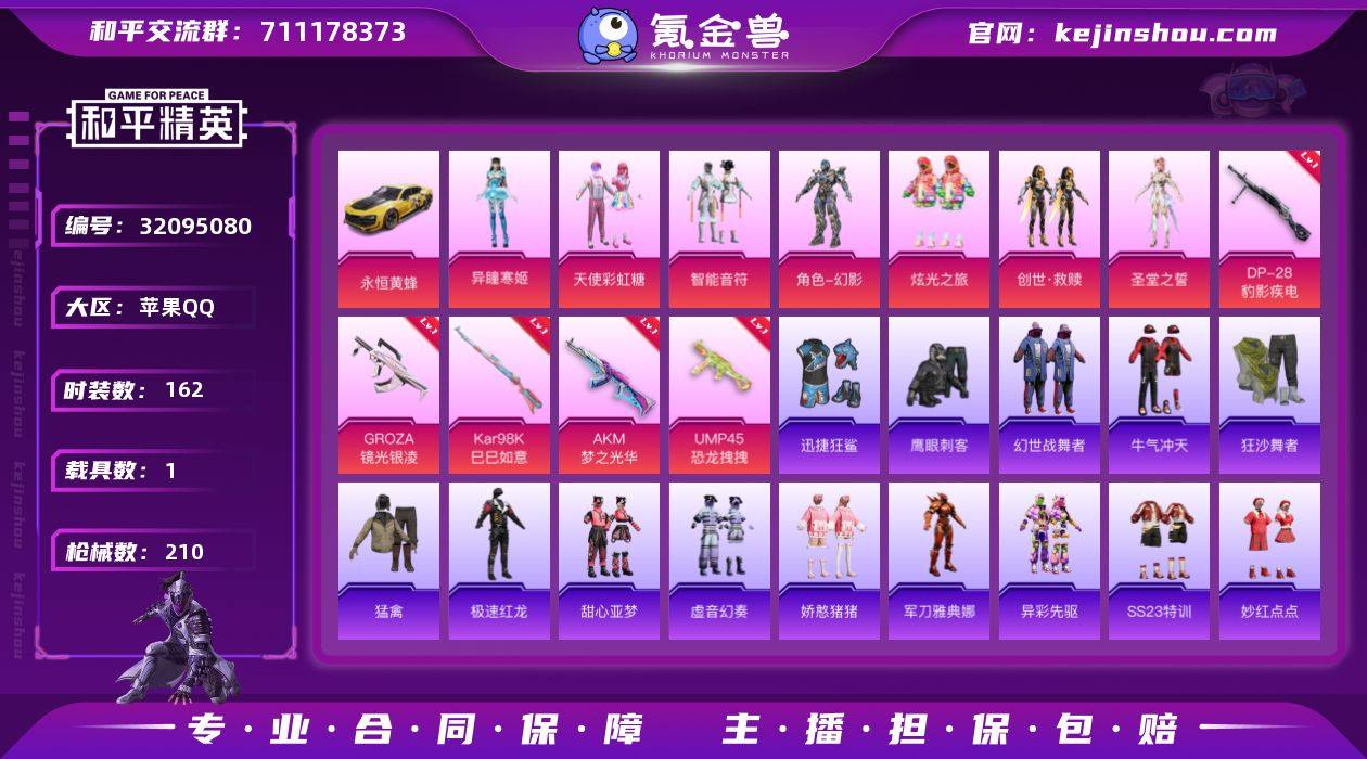 6粉装 6粉枪 1载具 162套装 210枪皮 42热门 永恒黄蜂 天使彩虹糖 吉莉礼服 炫光之旅 军械专家 智慧隐士 幻影公爵 空投萌叽 智慧之神 极速竞梦 炫蓝之夏 玩偶服-菲菲 猎梦纪元 黄色名流 牛气满满 猛禽 破晓战魂 鹤鸣 荣耀 神气柴柴 白兰地假日 银河圣歌 幻彩翩翩 柠萌假日 王牌教练 青玉碎影 飞驰魅影 龟仙人 音速流光 果汁能量 明鸳圣池 涂山之恋 冷焰舞者 空岛之星 贝斯之夜 狂战萌兔 香榭午后 惊鸿侠骨 萌趣咩咩 竞技名士 清新柠檬 娇憨猪猪 锦衣飞扬 元气发射 晨曦薄雾 龙的传人 玉兔迎春 快闪甜心 特战装甲 忠真马岱 森林游猎者 田园牧歌 春光漫游 轻风白浪 湖蓝色名流 光之冒险 雨林探路者 绯格组合 冰冻风暴 完美偶像 街头潮人 蓝彩潮人 绮丽涂鸦 耀眼新星 特殊使命 旭日情侣 血色贵族 缤纷果语 野性战心 暖心橘喵 格斗先锋 幻世战舞者 麻辣教官 幻影武者 夏日音浪 探宝勇士 智能音符 创世·救赎 角色-异瞳寒姬 AKM-梦之光华(7级) S686-生命誓言 汤姆逊-奇异狩猎者 SCAR-L-黄金龙骨 S1897-炫彩节奏 S1897-飞驰魅影 汤姆逊-异彩先驱 UMP45-恐龙拽拽(7级) S12K-幻世战舞者 S12K-娇憨猪猪 GROZA-懵萌河马 汤姆逊-环太平洋 AA12-G-萌物绒绒 S12K-破晓战魂 AUG-耀粉歌者 S12K-玩趣呆呆 QBZ-飞驰魅影 DBS-甜心亚梦 野牛-乌木金纹 M24-影袭 SPAS-12-田园牧歌 Mk47-妙红点点 Mk47-炫光之旅 M249-糯团青竹 DP-28-闪光银龙 DP-28-甜心亚梦 MP5K-异彩先驱 G36C-懵萌河马 AC-VAL-天降萌叽 AC-VAL-甜心亚梦 Mini14-异彩先驱 AC-VAL-乌木金纹 MG3-妙红点点 Mini14-穿刺龙虾 蜜獾-天降萌叽 MG3-惊鸿侠骨 蜜獾-娇憨猪猪 Kar98K-炫彩节奏 AKM-灼热熔岩 Kar98K-飞驰魅影 PKM-懵萌河马 AWM-炙焰牛王 M24-炫彩节奏 M24-乌木金纹 AUG-天降