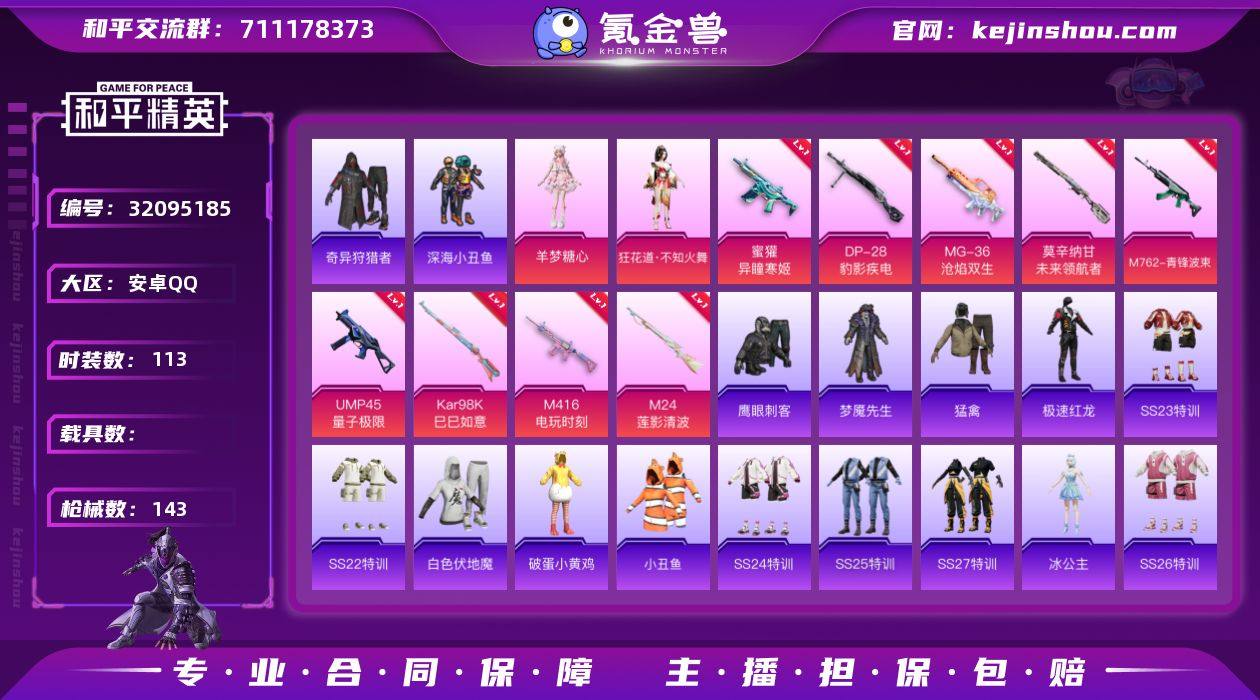 2粉装 9粉枪 113套装 143枪皮 19热门 滨海厨神 黄色名流 猛禽 破晓战魂 鹤鸣 耀粉歌者 柠萌假日 王牌教练 青玉碎影 龟仙人 涂山之恋 冷焰舞者 空岛之星 贝斯之夜 惊鸿侠骨 竞技名士 锦衣飞扬 深蓝色名流 酒红色名流 战地督导 灼焰舞者 龙的传人 快闪甜心 春光漫游 湖蓝色名流 绯格组合 冰冻风暴 完美偶像 街头潮人 蓝彩潮人 绮丽涂鸦 旭日情侣 缤纷果语 沙漠毒蛇 人气偶像 幻影武者 都市魅力 冰川特警 角色-狂花道·不知火舞 角色-羊梦糖心 M24-莲影清波(4级) M762-青锋波束(5级) 蜜獾-异瞳寒姬(2级) Kar98K-巳巳如意(5级) M416-电玩时刻(5级) DP-28-豹影疾电(5级) MG-36-沧焰双生(5级) 莫辛纳甘-未来领航者(2级) UMP45-量子极限(5级) 梦魇先生 鹰眼刺客 破蛋小黄鸡 小丑鱼 极速红龙 冰公主 白色伏地魔 SS27特训 SS26特训 SS25特训 SS24特训 SS23特训 SS22特训 M762-天降萌叽 DBS-彩虹符号 M249-彩虹符号 长空猛禽 霓虹街区 S686-奇异狩猎者