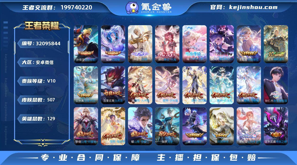 安卓WX-V10-最强王者段位-129英雄-507皮肤-2典藏皮肤-1典藏英雄-2无双-2珍品传说-54传说-162史诗 【英雄全皮】:钟无艳全皮,姜子牙全皮,刘邦全皮,孙权全皮,苍全皮,鬼谷子全皮,黄忠全皮,敖隐全皮,蒙恬全皮,夏洛特全皮,司空震全皮,赵怀真全皮,戈娅全皮,空空儿全皮,影全皮,海诺全皮,少司缘全皮 【荣耀典藏】:武则天英雄,孙悟空全息碎影,貂蝉幻阙歌 【无双皮肤】:孙悟空无相,妲己青丘九尾 【珍品传说】:安琪拉酷洛米之心,瑶大耳狗之梦 【传说皮肤】:王昭君长夜焕生,后羿神树通天,公孙离云诺千山,司空震愿照山河定,女娲愿照千秋盛,妲己愿照众生和,澜愿照九州拓,蔡文姬愿照福禄聚,虞姬愿照岁时盈,云缨幻光神枪,桑启鸣野蒿,铠冥王哈迪斯,朵莉亚心动手记,澜逐花归海,艾琳觅芳踪,狄仁杰夜礼服假面,王昭君永恒水手月亮,甄姬至美化雀舞,云缨鹤归松栖,公孙离记忆之芯,夏洛特浮生妄,虞姬无限倾心,项羽无限倾心,小乔山海琳琅生,曜山海苍雷引,李信山海炽霜斩,吕布怒海麟威,马超无双飞将,蔡文姬花朝如约,孙尚香异界灵契,西施游龙清影,周瑜音你心动,李元芳飞鸢探春,诸葛亮时雨天司,镜炽阳神光,虞姬启明星使,曜云鹰飞将,李信一念神魔,刘备时之恋人,伽罗太华,貂蝉猫影幻舞,张良黄金白羊座,干将莫邪久胜战神,达摩黄金狮子座,百里玄策白虎志,花木兰冠军飞将,梦奇胖达荣荣,后羿黄金射手座,貂蝉仲夏夜之梦,孙尚香末日机甲,宫本武藏地狱之眼,孙悟空地狱火,武则天海洋之心,狄仁杰超时空战士 【限定皮肤】:白起狰,铠冥王哈迪斯,大乔绒语心约,姜子牙天穹之誓,狄仁杰阴阳师,小乔山海琳琅生,赵云皇家上将,赵云引擎之心,赵云龙胆,墨子神迹守卫,嬴政优雅恋人,嬴政白昼王子,孙尚香蔷薇恋人,孙尚香异界灵契,鲁班七号狮舞东方,庄周高山流水,高渐离死...