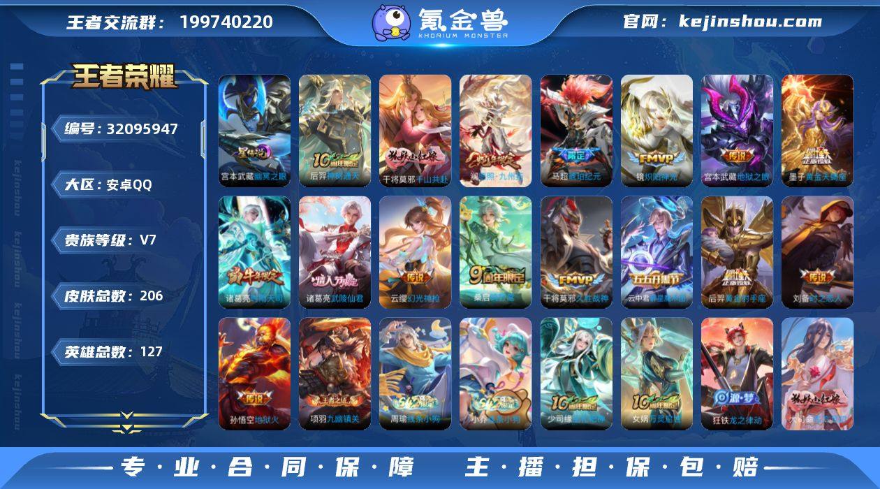 【WZ181111】安卓Q-V7-最强王者段位-127英雄-206皮肤-19传说-51史诗【英雄全皮】:空空儿全皮,影全皮【传说皮肤】:韩信踏浪归,关羽神骥镇沧海,花木兰异界灵契,后羿神树通天,干将莫邪千山共赴,澜愿照九州拓,云缨幻光神枪,桑启鸣野蒿,云中君群星魔术团,墨子黄金天蝎座,马超琥珀纪元,诸葛亮时雨天司,镜炽阳神光,刘备时之恋人,干将莫邪久胜战神,后羿黄金射手座,诸葛亮武陵仙君,宫本武藏地狱之眼,孙悟空地狱火【限定皮肤】:蒙犽顽岩魄,姜子牙天穹之誓,李白谪仙醉月,狄仁杰阴阳师,赵云皇家上将,阿轲迷踪丽影,周瑜赤莲之焰,夏侯惇朔风刀,狄仁杰魔术师,项羽海滩派对,兰陵王驯魔猎人,诸葛亮武陵仙君,诸葛亮时雨天司,百里玄策原初追逐者,裴擒虎擒涛扼浪,上官婉儿梁祝,鲁班大师探海日志,桑启海盐诗旅,张良古海寻踪,鬼谷子天穹祈灯,马超琥珀纪元,刘邦剑破天穹,程咬金群星魔术团,云中君群星魔术团,镜青焰无极,项羽苍威无极,周瑜熔金海岸【年限皮肤】:诸葛亮时雨天司,澜愿照九州拓【赛季限定】:夏侯惇朔风刀,桑启海盐诗旅,裴擒虎擒涛扼浪,鲁班大师探海日志,张良古海寻踪,鬼谷子天穹祈灯,刘邦剑破天穹,姜子牙天穹之誓,东皇太一噬灭天穹,太乙真人谧流熔炉,钟馗虚灵犬护,甄姬逆浪荇歌,亚瑟荣光之誓,百里玄策原初追逐者,项羽九幽镇关【战令限定】:兰陵王驯魔猎人,周瑜赤莲之焰,阿轲迷踪丽影,镜青焰无极,项羽苍威无极,亚连破空之剑,孙悟空神迹守卫,百里守约百相守梦,老夫子百相守梦,周瑜线条小狗,小乔线条小狗【史诗皮肤】:太乙真人瓦猫非猫,明世隐百晓客,周瑜线条小狗,小乔线条小狗,项羽九幽镇关,少司缘巫礼祀神,女娲万灵启世,狂铁龙之律动,阿轲化蝶舞,弈星万物之道,百里守约百相守梦,李白谪仙醉月,亚连破空之剑,大司命东方月初,蒙犽顽...