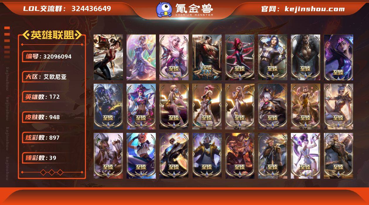 钻石段位-172英雄-948皮肤-897炫彩-1终极-60神话-108限定-97传说-177史诗 【神话皮肤】:十周年纪念安妮,源代码乐芙兰,殿堂传奇乐芙兰,十五周年纪念希维尔,水晶圣骑艾希,神凰行者瑞羽圣凰艾尼维亚,殿堂传奇薇恩,水晶巫灵泽拉斯,西部魔影炽天使永恩,海克斯科技崔丝塔娜,海克斯科技克格莫,海克斯科技拉莫斯,海克斯科技瑟庄妮,恐惧新星德莱厄斯,摄魂使者薇恩,新创战纪希维尔,至臻真实伤害奇亚娜,至臻真实伤害亚索,至臻至高天奎桑提,至臻天龙之子伊泽瑞尔,至臻斗魂觉醒派克,至臻黑夜使者凯隐,至臻幻灵战斗猫金克丝,至臻花仙使者卡特琳娜,至臻剪纸仙灵希维尔,至臻绝息圣堂厄运小姐,至臻KDA阿卡丽,至臻KDA阿狸,至臻KDAALLOUT卡莎,至臻KDA卡莎,至臻KDA伊芙琳,至臻烈焰美人薇恩,至臻灵能特工伊泽瑞尔,至臻魅惑女巫厄运小姐,至臻青花瓷拉克丝,至臻青花瓷丽桑卓,至臻神凰行者烈羽焰凰霞,至臻太空律动魔音海妖娜美,至臻未来战士锤石,至臻西部魔影猎天使恶魔泰隆,至臻星之守护者辛德拉,至臻心之钢永恩,至臻源计划逆流塞拉斯,至臻源计划正义艾瑞莉娅,至臻月蚀骑士赛娜,至臻玉剑传说武剑仙,至臻玉剑传说武剑仙2022 【热门头像】:爱情之歌头像 【卓越皮肤】:殿堂传奇卡莎 【至臻皮肤】:至臻剪纸仙灵希维尔,至臻魅惑女巫厄运小姐,至臻绝息圣堂厄运小姐,至臻蒙面女郎莫甘娜,至臻KDA伊芙琳,至臻源计划正义艾瑞莉娅,至臻狼神英灵斯维因,至臻双城之战2指挥官凯特琳,至臻花仙使者卡特琳娜,至臻黑色玫瑰假面舞会卡特琳娜,至臻暗裔英雄嘉文四世,至臻烈焰美人薇恩,至臻灵能特工伊泽瑞尔,至臻天龙之子伊泽瑞尔,至臻KDA阿卡丽,至臻幻灵狮心蕾欧娜,至臻西部魔影猎天使恶魔泰隆,至臻玉剑传说武剑仙锐雯,至臻玉剑传说武剑仙(2022),至臻青花瓷拉克丝,至臻灵魂莲华拉克丝,...