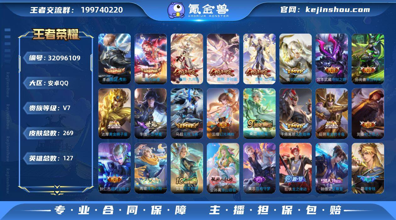 可二次 司空震全皮 狂铁全皮 贵族7-269皮2典藏15传说-3个英雄全皮 安卓手Q135区269皮2典藏15传说0无双V7 营地ID539226082绝世王者【荣耀典藏】:拾光映像,鸣剑·曳影【优质限定皮肤】:无双飞将,至尊宝【传说皮肤】:愿照·岁时盈,幻光神枪,愿照·九州拓,愿照·山河定,鸣野蒿,时之恋人,炽阳神光,无双飞将,超时空战士,末日机甲,黄金狮子座,地狱之眼,久胜战神,一念神魔,黄金射手座【史诗皮肤】:星界战将,天才门将,晚萤,暗渊魔法,万灵启世,涂山容容,龙之律动,百相守梦,万物之道,末日机甲,暗夜贵公子,心灵骇客,箭羽风息,埋骨钱,缤纷独角兽,燃音魔法,超元猎域,荣光圣徽,地狱燃心,水晶猎龙者,江河有灵,冰雪圆舞曲,圣诞恋歌,顽趣,逐浪之夏,地狱岩魂,金属风暴,圣诞老人,未来纪元,山海·玄木吟,无心,五谷丰年,乘风破浪,暗夜猫娘,苍穹之光,摇滚巨星,冰冠公主,圣诞狂欢,黎明之约,电玩高手,鬼剑武藏,蔷薇恋人,逐梦之影,暗隐猎兽者,女仆咖啡,冰锋战神,云间偶戏,原初追逐者,纤云弄巧,狂想玩偶喵,李小龙,幽灵船长,星夜王子,节奏热浪,繁星吟游,千年之狐,白龙吟,暗影游猎,魔术师,修罗,皇家上将,特工魅影,黄金分割率,偶像歌手,迷踪丽影,至尊宝,曙光守护者,鹰眼统帅,驯魔猎人,梁祝,水果甜心,魅力维加斯