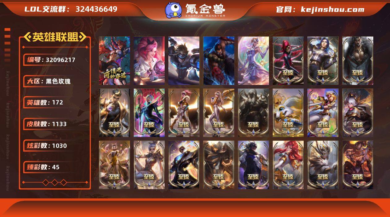 【皇冠号】大师段位-172英雄-1133皮肤-1030炫彩-7终极-73神话-161限定-115传说-201史诗 【神话皮肤】:十周年纪念安妮,源代码乐芙兰,殿堂传奇乐芙兰,十五周年纪念希维尔,水晶圣骑艾希,新卧虎藏龙贾克斯,暗星科加斯,神凰行者瑞羽圣凰艾尼维亚,黎明使者卡尔玛,殿堂传奇薇恩,灰烬骑士莫德凯撒,水晶圣骑蕾欧娜,水晶巫灵泽拉斯,水晶泰坦诺提勒斯,水晶掠夺者卡兹克,水晶圣骑塔莉娅,永恒之森奥恩,灰烬骑士派克,海克斯科技拉莫斯,海克斯科技斯维因,恐惧新星德莱厄斯,零之枪骑赫卡里姆,摄魂使者薇恩,至臻真实伤害赛娜,至臻至高天奎桑提,至臻天龙之子伊泽瑞尔,至臻青花瓷千珏,至臻西部魔影伊芙琳,至臻至高天凯尔,至臻北极星使者沃里克,至臻电玩女神凯特琳,至臻飞升战神潘森,至臻福牛守护者菲奥娜,至臻黑夜使者凯隐,至臻幻灵战斗猫金克丝,至臻花仙使者卡特琳娜,至臻KDA阿卡丽,至臻KDA阿卡丽2022,至臻KDA阿狸,至臻KDAALLOUT卡莎,至臻KDA卡莎,至臻KDA卡莎2022,至臻烈焰美人薇恩,至臻烈焰美人薇恩2022,至臻灵魂莲华易,至臻魔女阿卡丽,至臻魔女婕拉,至臻魔女乐芙兰,至臻墨之影武者亚索,至臻女帝黛安娜,至臻青花瓷丽桑卓,至臻绒毛菲兹,至臻神凰行者烈羽焰凰霞,至臻神龙尊者均衡之龙沃利贝尔,至臻神龙尊者炎龙瑟提,至臻王国机神玄武盖伦,至臻未来战士锤石,至臻腥红之月亚托克斯,至臻腥红之月亚托克斯2022,至臻星之守护者妮蔻,至臻星之守护者妮蔻2022,至臻星之守护者索拉卡,至臻星之守护者辛德拉,至臻源计划逆流塞拉斯,至臻源计划正义艾瑞莉娅,至臻玉剑传说武剑仙,至臻玉剑传说武剑仙2022,至臻战斗学院拉克丝 【热门头像】:爱情之歌头像,勇者阿狸头像,星守索拉卡头像 【至臻皮肤】:至臻魔女乐芙兰,至臻至高天凯尔,至臻灵魂莲华易,至臻星之守护者索拉卡,...