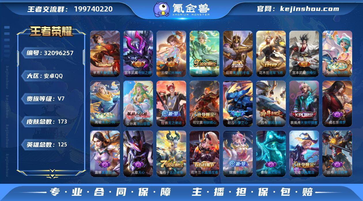 宫本幽冥安卓手Q276区173皮1典藏6传说0无双V7 营地ID1849621168非凡王者【荣耀典藏】:大秦宣太后【传说皮肤】:黄金射手座,幻光神枪,鸣野蒿,惊梅引,冠军飞将,地狱之眼【史诗皮肤】:乘风破浪,末日机甲,偶像歌手,荣光圣徽,龙之律动,水果甜心,线条小狗,修罗,涂山容容,遇见飞天,幽灵船长,暗隐猎兽者,功夫厨神,黄金分割率,圣诞狂欢,特工魅影,星夜王子,苍穹之光,心灵骇客,拒霜思,百解令,绅士熊喵,江河有灵,蔷薇恋人,地狱燃心,驭风魔法,御风骁将,乱世虎臣,鬼剑武藏,魔术师,冰冠公主,水晶猎龙者,引擎之心,逐浪之夏,无心,五谷丰年,地狱岩魂,鹰眼统帅,圣诞恋歌,紫霞仙子,皇家上将,狮舞东方,摇滚巨星,天狼狩猎者,魅力维加斯