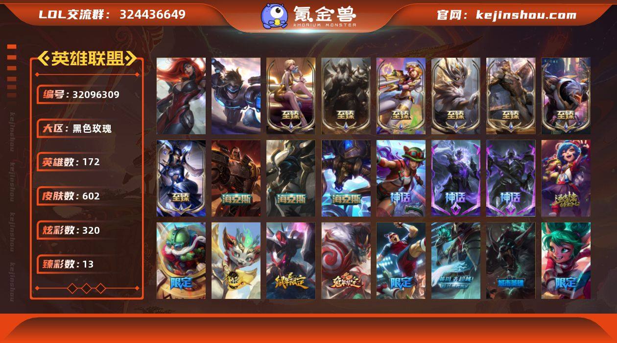 【皇冠号/QQ钱包注销不了】未定级段位-172英雄-602皮肤-320炫彩-2终极-15神话-78限定-66传说-128史诗 【神话皮肤】:十周年纪念安妮,十五周年纪念希维尔,神凰行者瑞羽圣凰艾尼维亚,灰烬骑士莫德凯撒,灰烬守护者慎,海克斯科技阿利斯塔,恐惧新星德莱厄斯,零之枪骑赫卡里姆,至臻电玩女神凯特琳,至臻KDA伊芙琳,至臻魔女婕拉,至臻青花瓷丽桑卓,至臻腥红之月亚托克斯,至臻源计划逆流塞拉斯,至臻源计划阴劫 【珍稀头像】:星守阿狸头像 【热门头像】:觅心之翼奎因头像,KDA阿卡丽头像 【至臻皮肤】:至臻KDA伊芙琳,至臻电玩女神凯特琳,至臻青花瓷丽桑卓,至臻魔女婕拉,至臻源计划阴劫,至臻腥红之月亚托克斯,至臻源计划逆流塞拉斯 【臻彩皮肤】:天龙之子卡莎飞龙乘云,无畏骑士瑟庄妮赤子初心,墨之影武者亚索金墨耀影,征服者阿利斯塔炫金,神龙尊者圣龙李青龙腾云起,灰烬守护者慎余烬觉醒,泳池派对辛德拉荔枝枝连击,可爱可爱粉红红布里茨,魔女阿卡丽虚荣,净雪之月莫甘娜冬虹,幻灵战斗兔阿萝拉梦幻强袭,心之钢伊泽瑞尔天纵才华 【年限皮肤】:王国机神朱雀蕾欧娜,剪纸仙灵加里奥,天龙之子斯莫德,点心宝贝阿木木,龙马烈焰波比 【海克斯皮肤】:海克斯科技阿利斯塔,零之枪骑赫卡里姆,恐惧新星德莱厄斯 【情人节限定】:甜心宝贝娑娜,水晶玫瑰婕拉 【冰雪限定】:幸福女神乐芙兰,冰雪风暴希维尔,圣诞精灵崔丝塔娜,圣诞狂欢基兰,阿木木“主人不要我了”,邪恶圣诞老人维迦,喜庆之树茂凯,圣诞玩偶波比,圣诞老人古拉加斯,圣诞驯鹿克格莫,魄罗骑士瑟庄妮,寒冬精灵璐璐,冰雪节格雷福斯,冰雪女神辛德拉,冰雪兽纳尔 【终极皮肤】:未来战士伊泽瑞尔,武装战姬厄运小姐 【限定皮肤】:诺斯费拉图弗拉基米尔,送披萨的小姐姐希维尔,地底世界崔斯特,冠军典狱长锤石,冠军之矛卡莉丝塔...