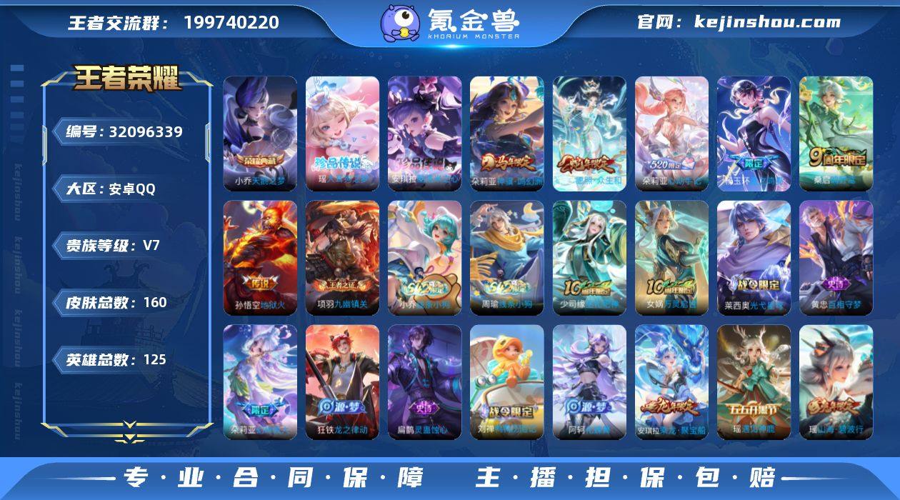 实名: 可修改 贵族等级: V7 英雄数: 125 皮肤数: 160 荣耀水晶: 天鹅之梦 珍品传说: 酷洛米之心,大耳狗之梦 传说皮: 地狱火,朵莉亚心动手记,星之鸣奏,神骥·鸣幻洲 限定皮: 山海·碧波行,鸣野蒿,愿照·众生和