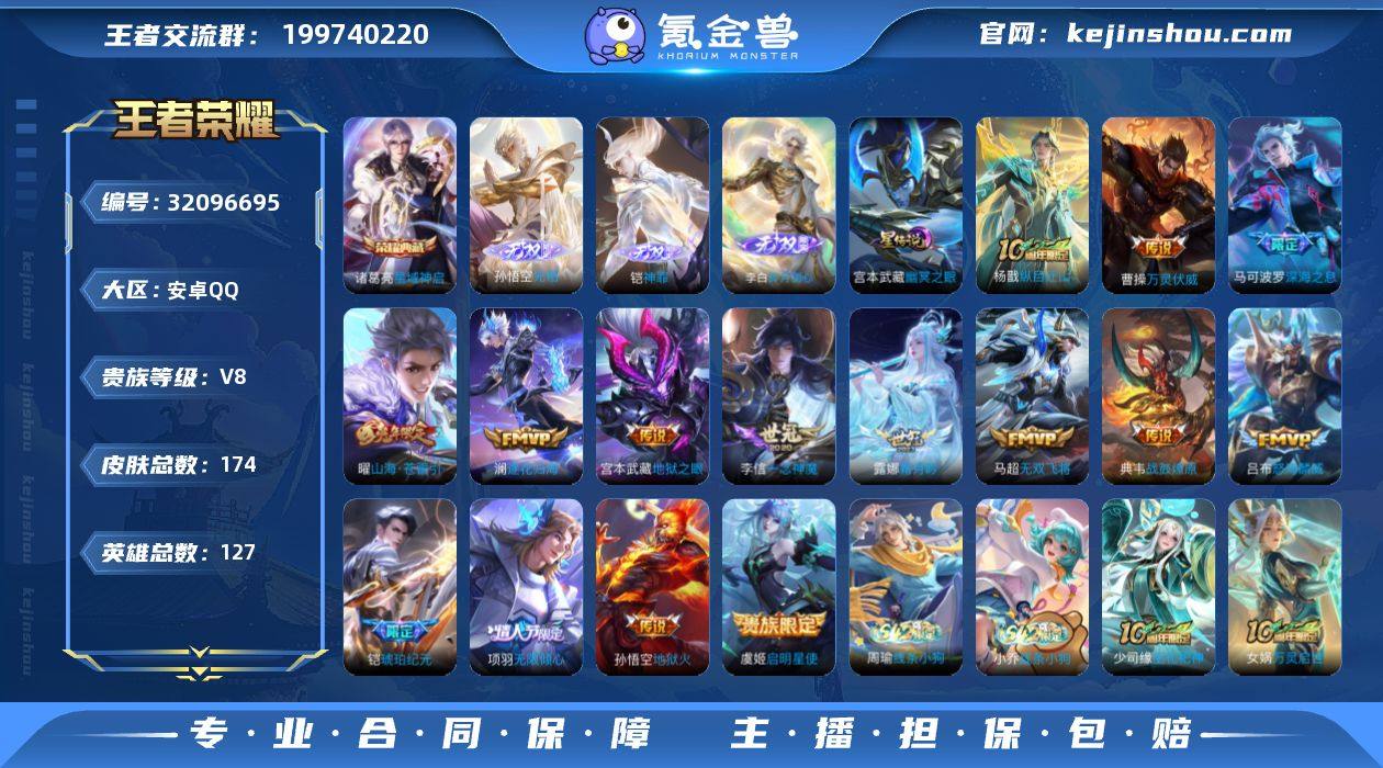 48122|极品入坑打野小号 4无双(李信 孙悟空 凯 李白) 1星传说 13个性按键安卓QQ 174皮 贵族8级 1典藏 4无双 16传说 42史诗【荣耀典藏】星域神启【无双限定】无相,问心剑,神罪,碎月剑心【传说皮肤】万灵伏威,纵目迁山,神骥·赴朔漠,战鼓燎原,怒海麟威,地狱火,地安卓QQ 174皮 贵族8级 1典藏 4无双 16传说 42史诗【荣耀典藏】星域神启【无双限定】无相,问心剑,神罪,碎月剑心【传说皮肤】万灵伏威,纵目迁山,神骥·赴朔漠,战鼓燎原,怒海麟威,地狱火,地狱之眼,山海·苍雷引,一念神魔,逐花归海,启明星使,琥珀纪元,霜月吟,无限倾心,深海之息,无双飞将【史诗皮肤】傩神司,万灵启世,线条小狗,巫礼祀神,百晓客,罗小黑战记,光弋星穹,百相守梦,群星魔术团,破空之剑,绅士熊喵,末日机甲,雪上飞焰,金属风暴,猫狗日记,魅力维加斯,妄想食味,摇滚巨星,暗夜贵公子,时之恋人,水果甜心,鬼剑武藏,冰霜恋舞曲,灵蛊蚀心,幽灵船长,逐浪之夏,谪仙醉月,龙之律动,鹰眼统帅,魔术师,冰雪圆舞曲,星夜王子,特工魅影,功夫厨神,水晶猎龙者,顽岩魄,夏日便利店,皇家上将,曙光守护者,暗夜猫娘,燃音魔法,蔬乡物语【勇者皮肤】荣光之誓,线条小狗,线条小狗,径山谋武,糖果风暴,锦麟游梦,罗小黑战记,往忆晖光,逆浪荇歌,死霸装,戏梦巡演,鹤鸣心笺,踏浪烽翎,苍云破阵,溯影追猎,极光幻客,命运加冕,落日弦歌,克喵,噬灭天穹,动物派对,鸿运当头,死亡骑士,铁甲之心,黄金武士,汉昭烈帝,浪漫序章,万事如意,纽约教父,异域游侠,秘密基地,剑破天穹,熔金海岸,次元突破,暗都幽影,谧流熔炉,少女阿狸,紫罗兰之誓,星梦巡礼,时尚教父,天穹之誓,漠中幻影,神迹守卫,天使之翼,万象初新,未来纪元,无尽征程,古海寻踪,五福同心,玫蓝誓约,景韶洛都,蔬乡物语,敏锐之力,龙舞盛年,西部大镖客,牛运亨通,特工战影,阴阳师,潮玩探月行,幻想奇妙夜,花好人间,白色死神,群星魔术团,星际陆战队,契约...