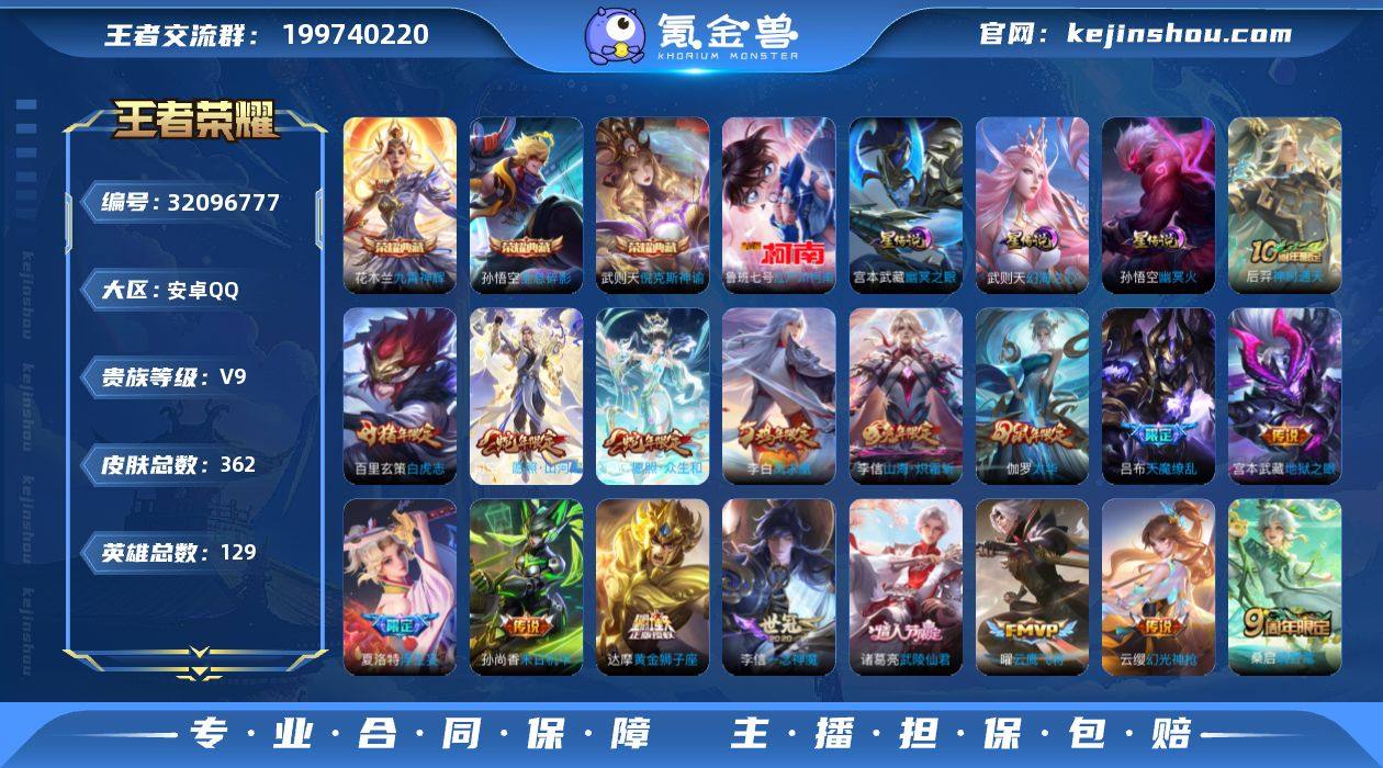 【V9 3典藏 1珍品 3星传说 27传说 362皮肤 129英雄】对抗路30段,至尊宝,全息碎影,倪克斯神谕,九霄神辉,江户川柯南,27传说,凤求凰,白虎志,云鹰飞将,天魔缭乱,一念神魔,山海·炽霜斩,太华,灼幽烈阳,武陵仙君,猫影幻舞,黄金射手座,末日机甲(孙尚香),地狱火,地狱之眼,超时空战士(狄仁杰),黄金狮子座,时之恋人(刘备),浮生妄,冠军飞将,海洋之心,启明星使,炽翼辉光,鸣野蒿,幻光神枪,愿照·众生和,愿照·山河定,神树通天df6-52,编号:SXEXB96