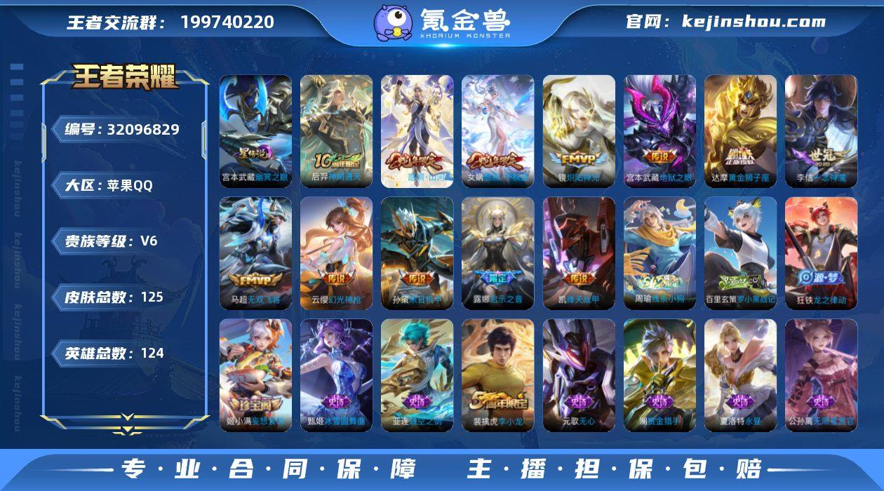 贵族等级:V6 典藏皮肤数:0 珍品无双皮肤数:0 无双皮肤数:0 珍品传说皮肤数:0 传说皮肤数:12 史诗皮肤数:33 皮肤数:125 英雄数:124 段位:王者 卖家说:金标苏烈还有个战区巅峰对抗路号里面还有100多点卷